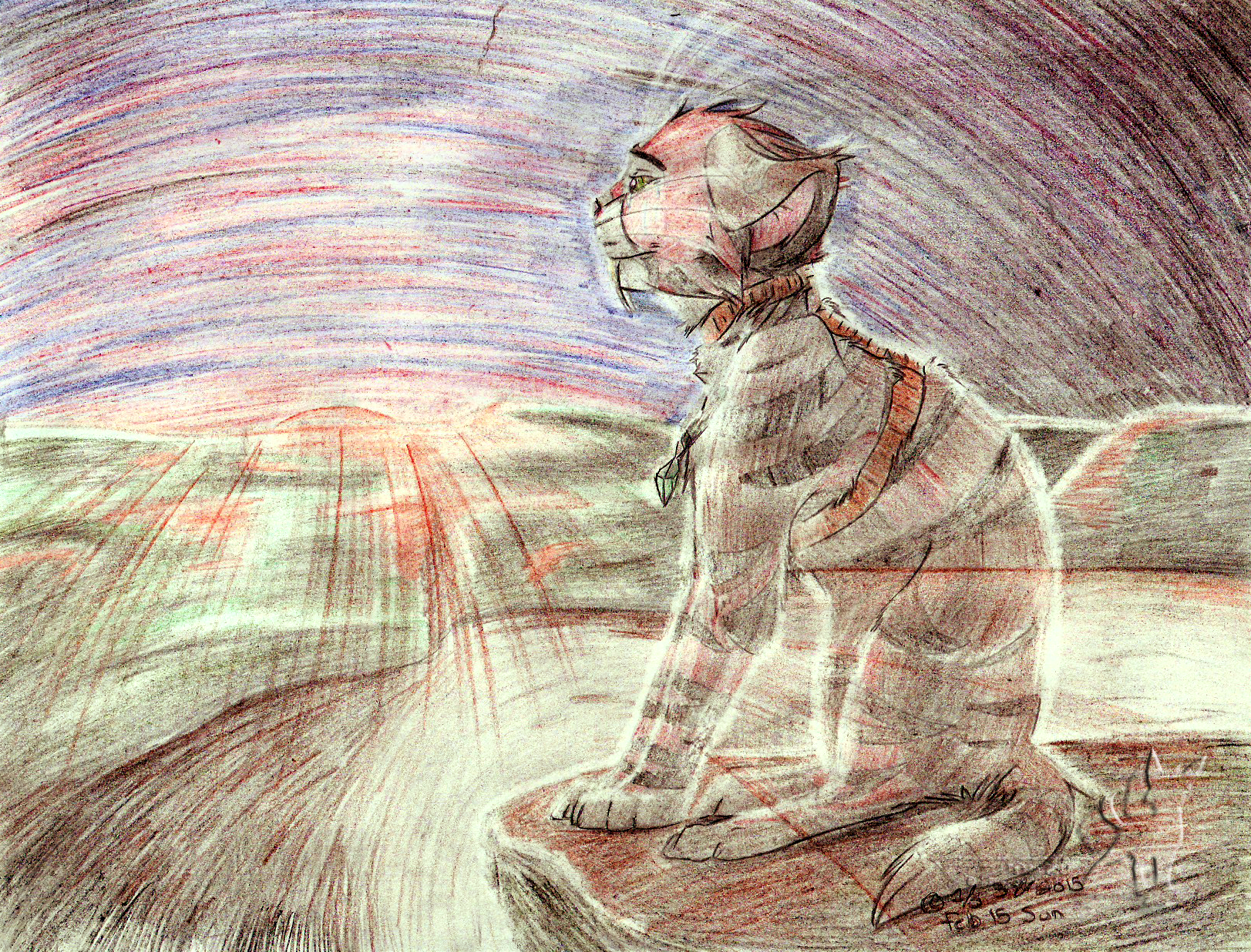 Ahh, seems I am doing a yearly sunset image with Juanra. Any other char I try a sunset with doesn't turn out right for some reason. So guess he is my sunset guy. I did a lot of experimenting in this pic, mostly with lighting, to see I could get high highlights and dark shadows, and get a mix of midtones. Didn't really get what I was going for. But I still like the outcome. Need to figure out how to get extreme shading an lighting with traditional artwork. It's much easier digitally. I want an AT to come out correctly so I'll likely be spamming with experimental pics for a while until I get the lighting I gong for. Also, my schedule seems to be dying down for a while, so more art time. And maybe some more Kingdom Hearts II Final Mix hacks! Amen.