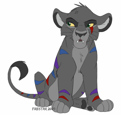 xD Contest entry for lightliger's contest on dA. The theme was to give one of his characters a new look. So I took Chaos ( who's normally a big, bad lookin' saber wolf thing x3) and changed him into a cute lion cub. I don't think he likes it much though.