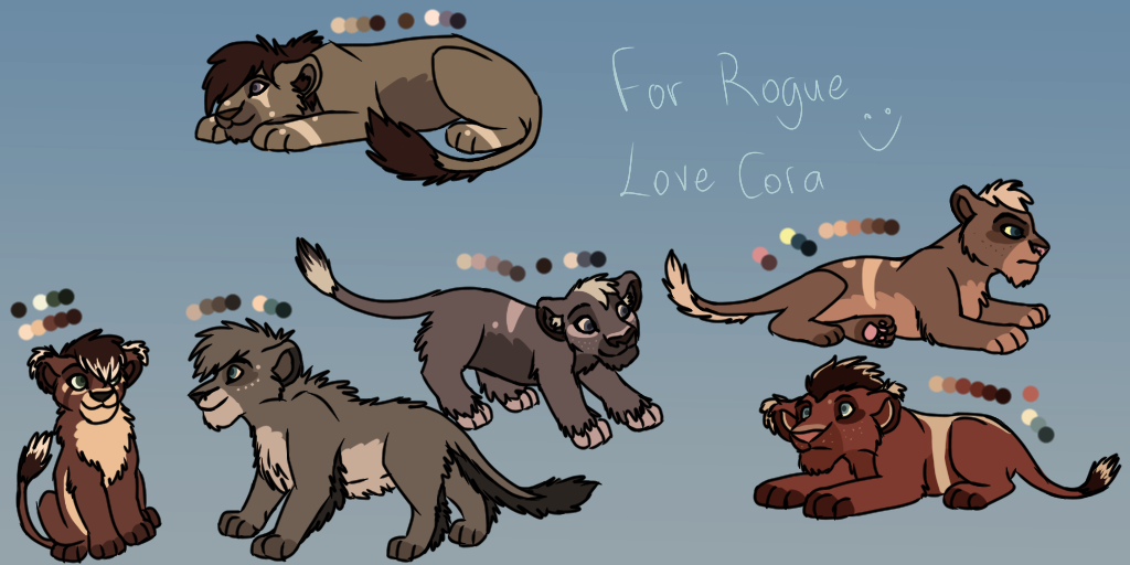 This is my entry for Awesomesauce2014's contest of creating cubs for Rogue and Ezzy. I made six cubs because I thought it would be a fun and cute thing to do. I mixed Rogue and Ezzy's colours and designs for the cubs.