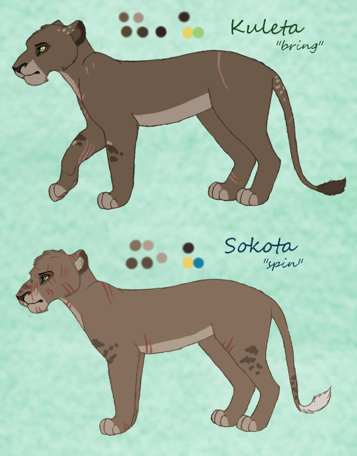 Kuleta - "bring" - elder sister - daughter of Tafuta and Ufunuo - cousin to Kaharabu Sokota - "spin" - younger sister - daughter of Tafuta and Ufunuo - cousin to Kaharabu