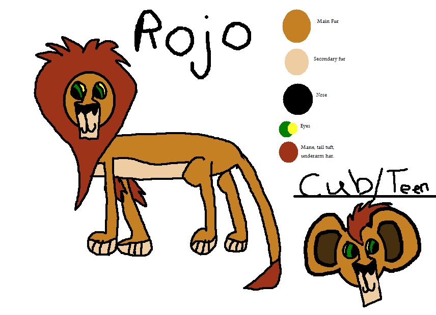 Rojo is the son of Chaka and Mona. When Chaka left for a drink, he found Kopa and they went back to Priderock. Mona waited for him, even when she was ready to have cubs, she waited. Soon, she relized she had to have them, without him. She had two cubs, a boy and a girl. She named the girl Zuri, and named the boy Rojo. Rojo looked just like Chaka. And Zuri looked like Mona. Rojo always wondered who his father was. Whenn he was a teenager, he found Shani, Kovu and Kiara's third child. They became good friends. When they were playing one day, Chaka jumped out and told Rojo to leave Shani alone. Rojo left. Chaka had a weried feeling about him, so he followed him. Chaka soon found Mona again. They had an argument and Chaka left. Mona raised her children alone untill they were adults. Rojo stayed with this sister and mother though most of his adulthood. Soon, Shani came and told Rojo she had to stay with them. Rojo let her. He relized that he had a pride, so they soon owned the new teritory, but he let the kings near.