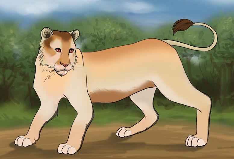 Other: Her striking red eyes are what set her apart from the rest of the Magharibi lions, and perhaps why others avoid her. Her eyes were black as cub but turned red as she got older.