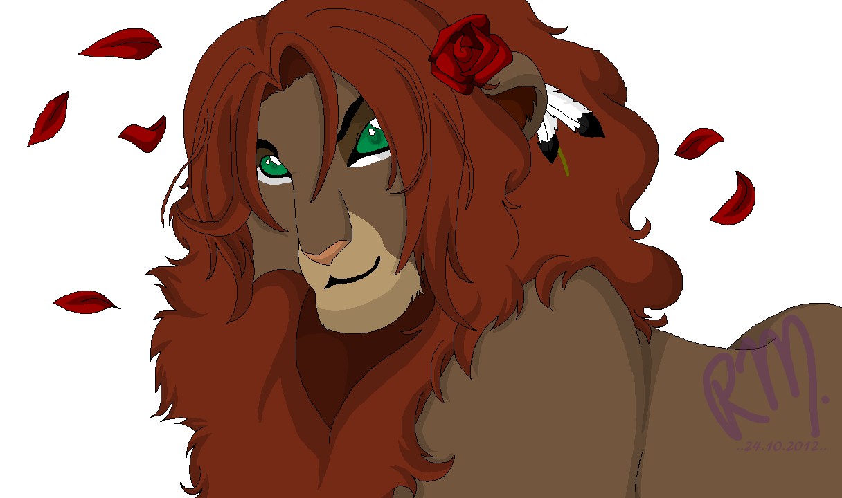 History: Jumo had a normal cubhood; a loving mother, a good father, and a supportive pride. When he was two and left his birth pride to start a new one of his own with his mate at the time, he found out she was cheating on him all along. As he was so hurt, he didn't notice he was running straight off a small cliff, into the river. When he hit his head on the bottom of the river, he was knocked unconcious and taken downstream from his home, where he woke up. He didn't know who he was, where he had come from, and what he would do. So, he just kind of went with the flow and walked until he found some place he liked. He made a new him and stayed that way ever since.
