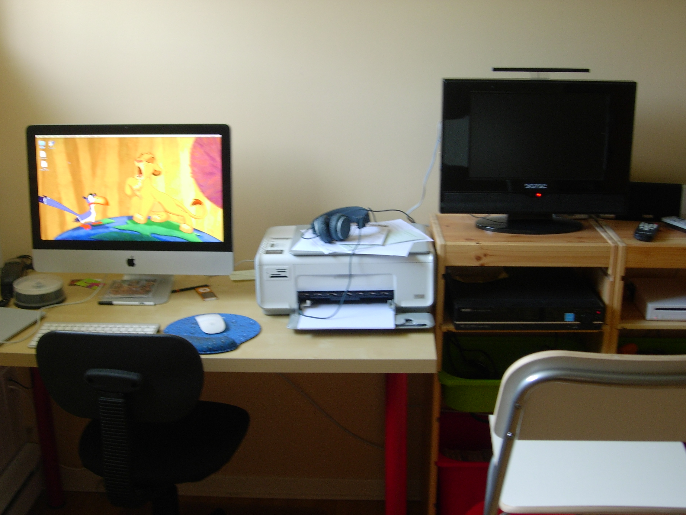 My laptop (where I mostly play Skyrim) sits on the desk in my room.