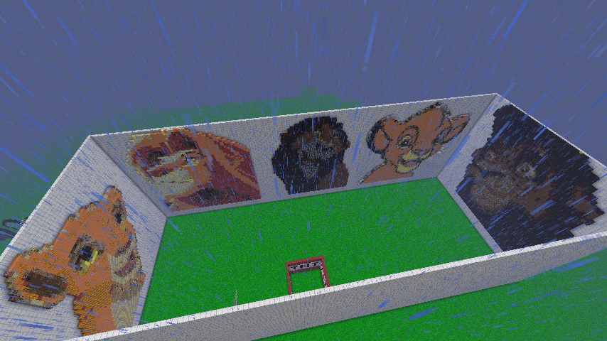 Now we have the old things, Pride Rock and the Pixel Art (Wall surrounding art courtesy of RainbowDash) You will notice that Mufasa is gone. Yeah, he died, got trampled, very tragic. But he will be brought back to life!