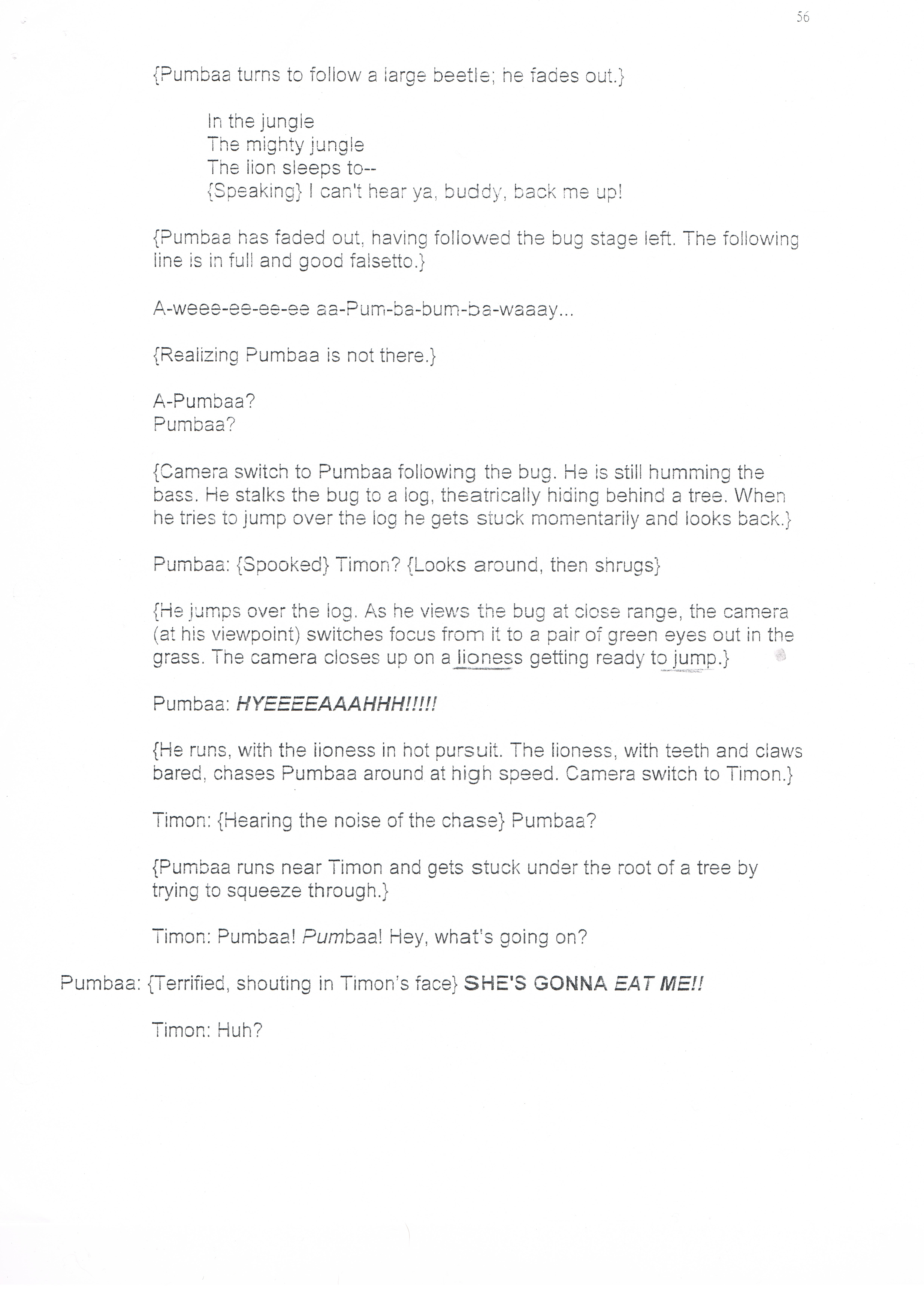 This was such a hard scene...Well, this and the next few scenes with Nala. We probably rehearsed this part the most, and the dialog between the two was very long and a few parts sounded alike. This made it easy to say the wrong line!