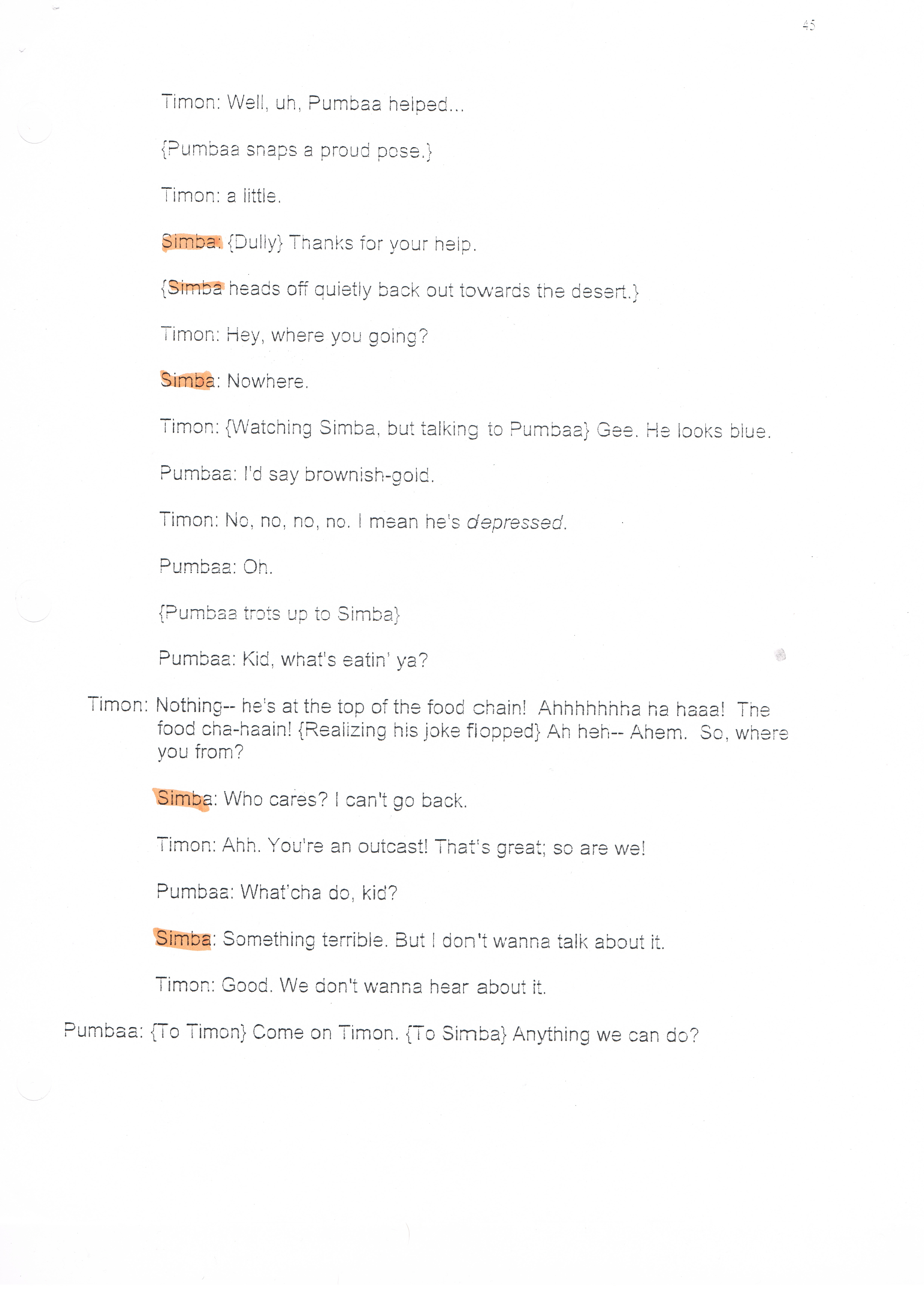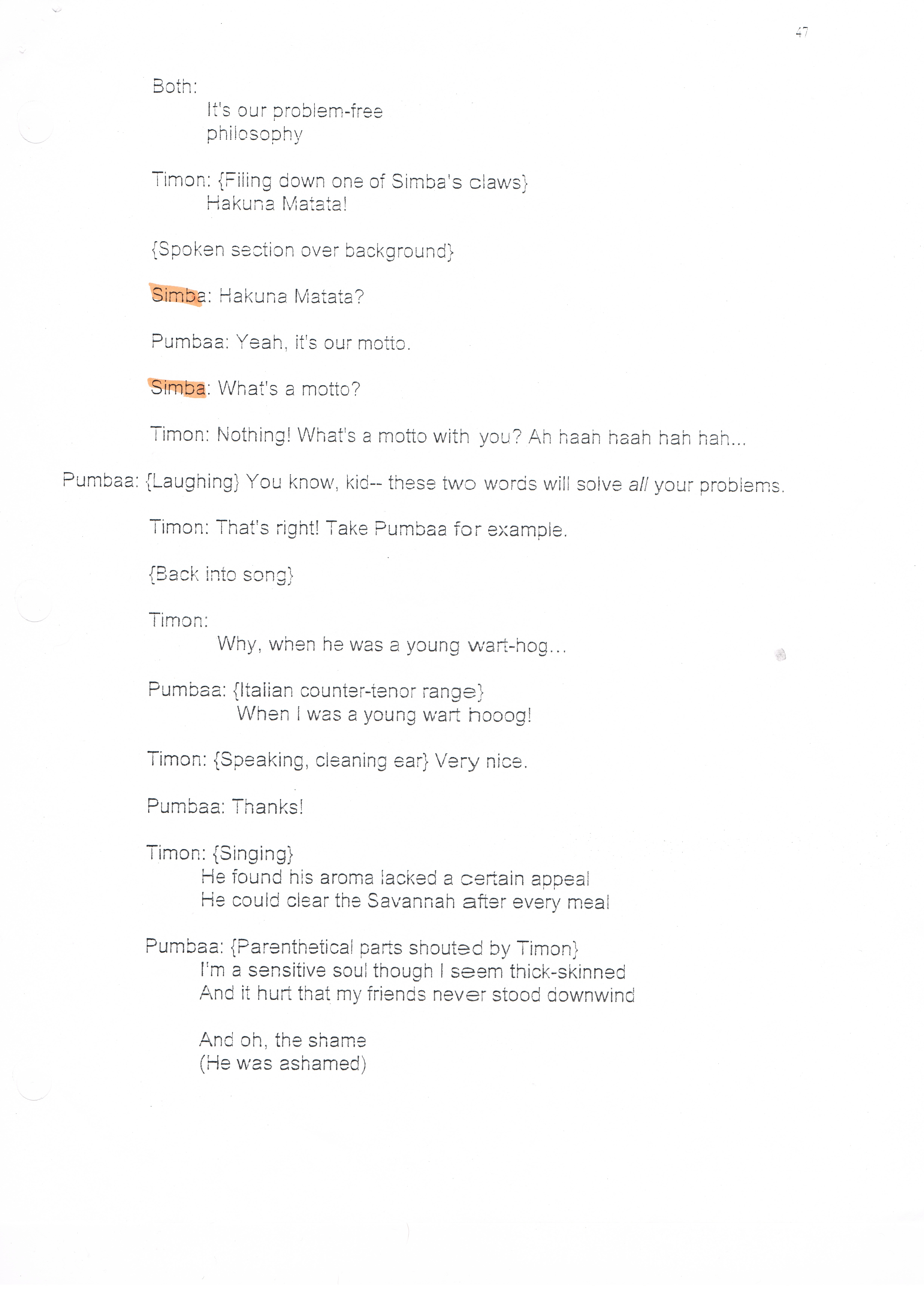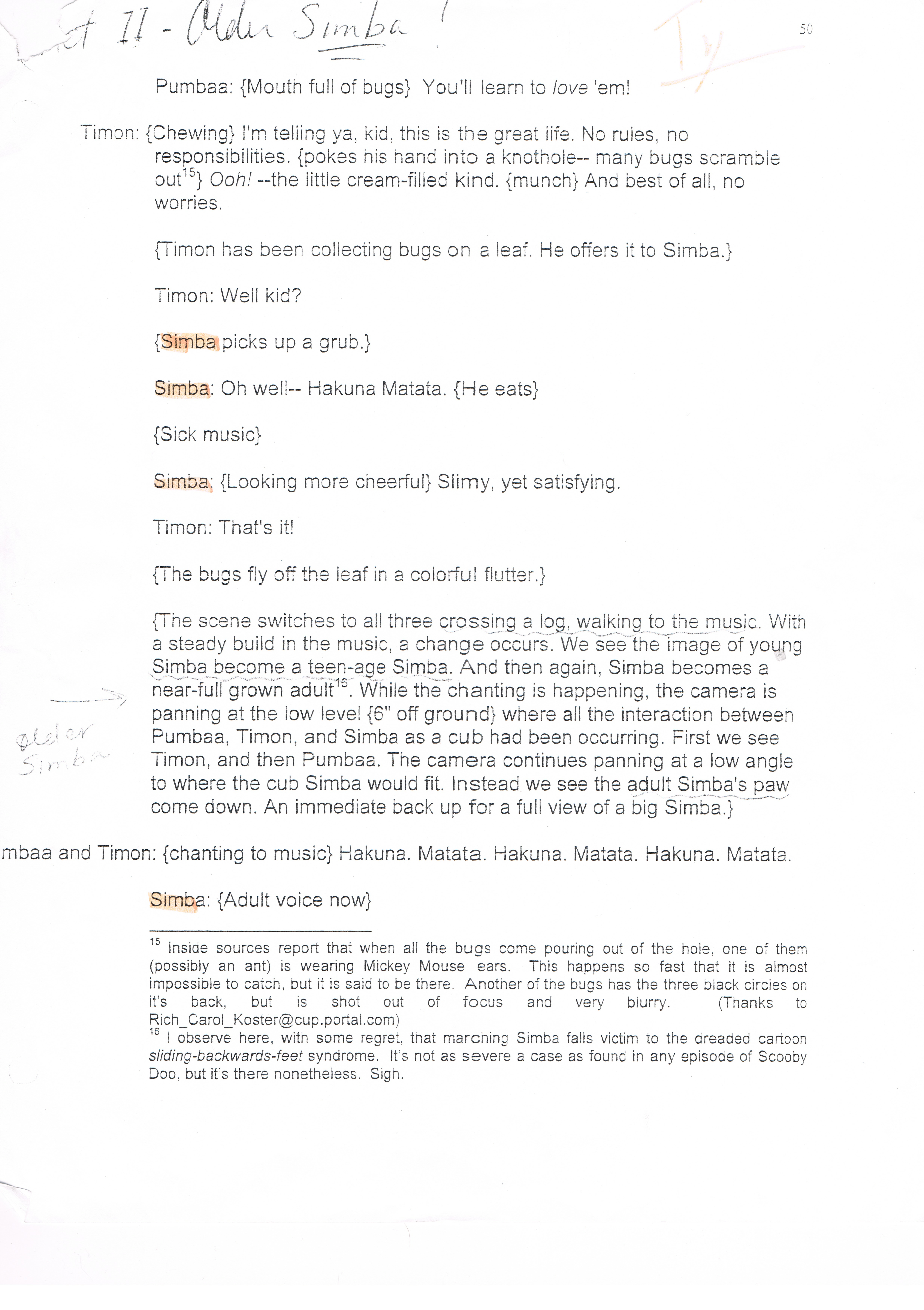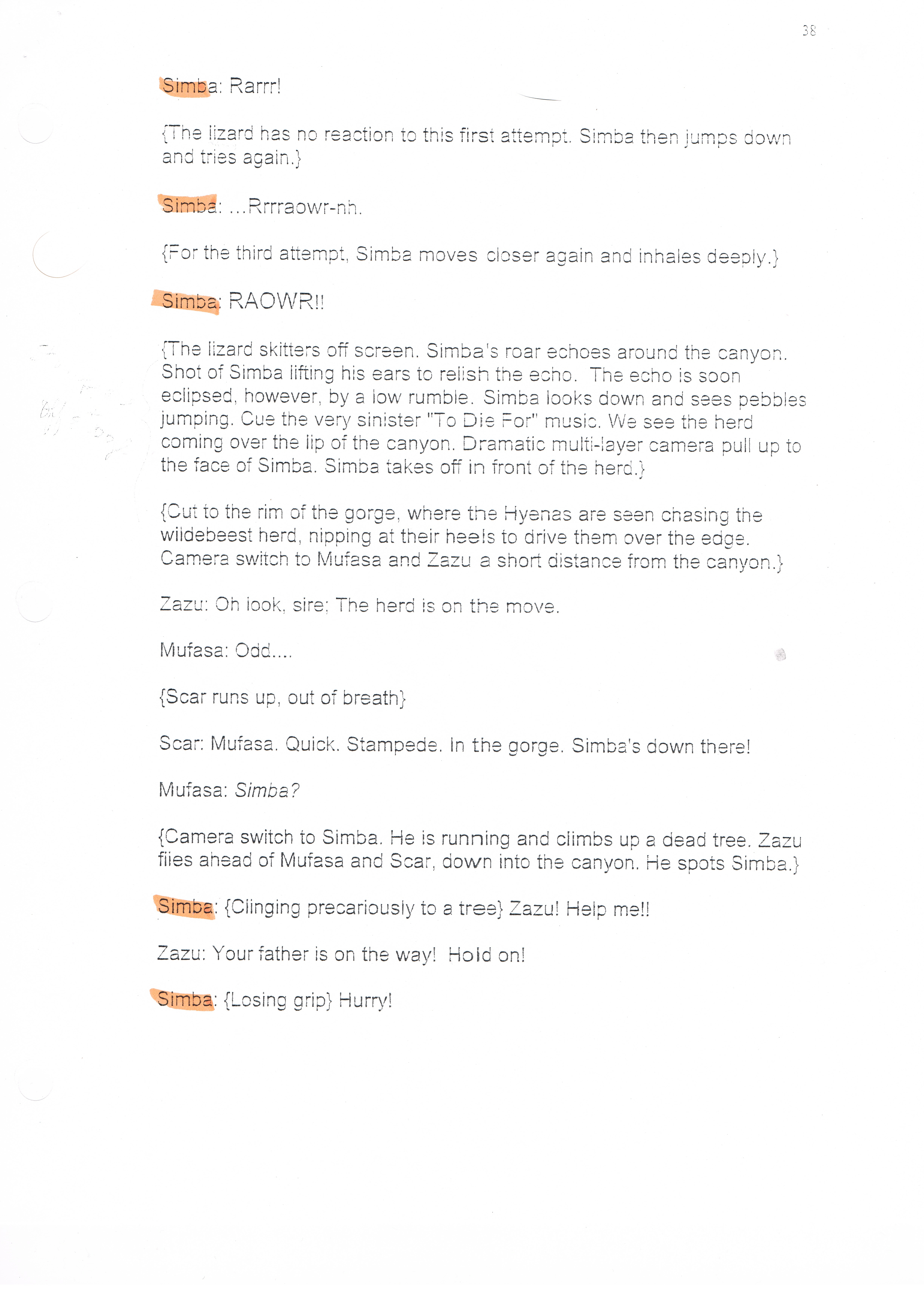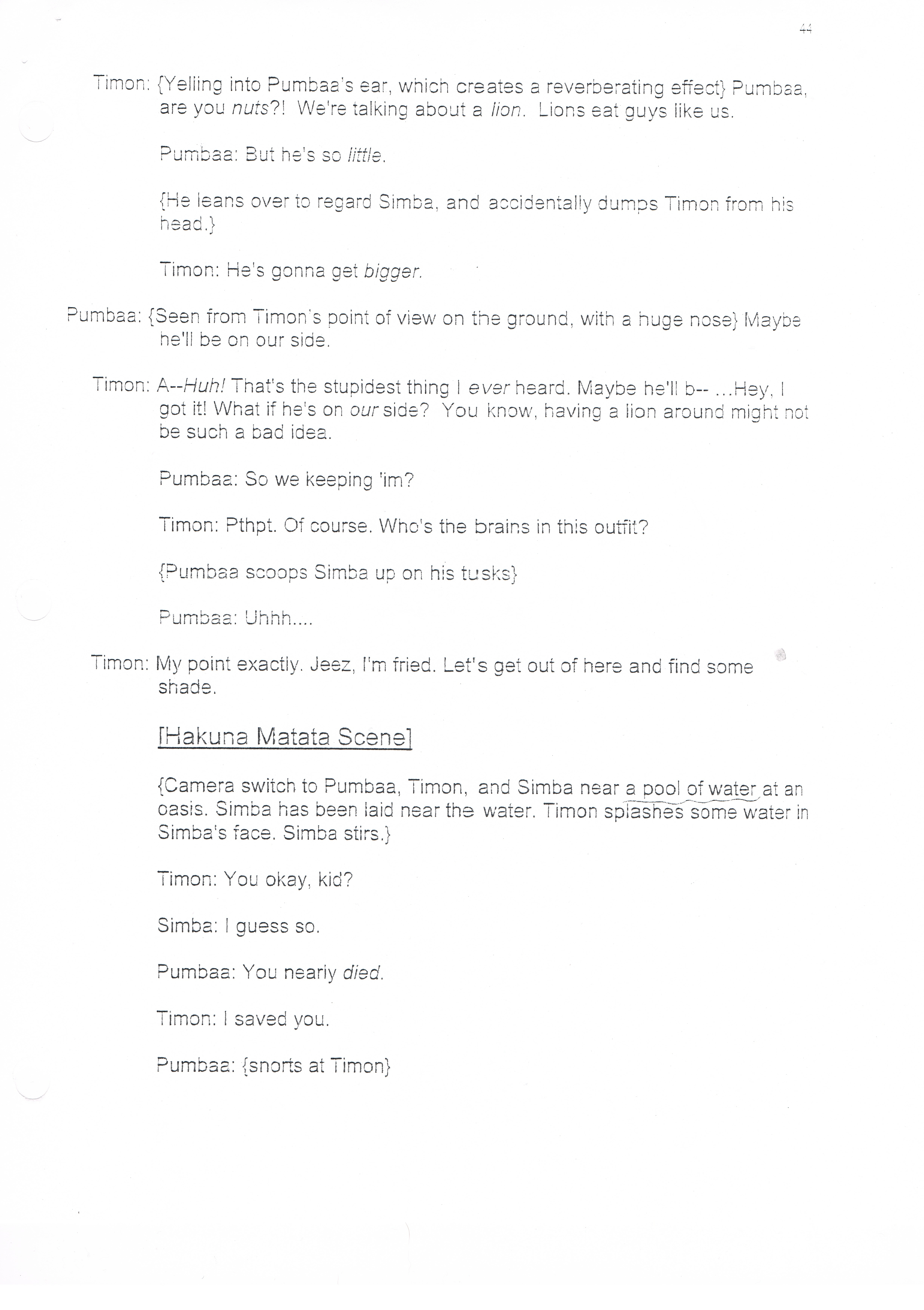 Re: Lion King Production Script (My Copy)