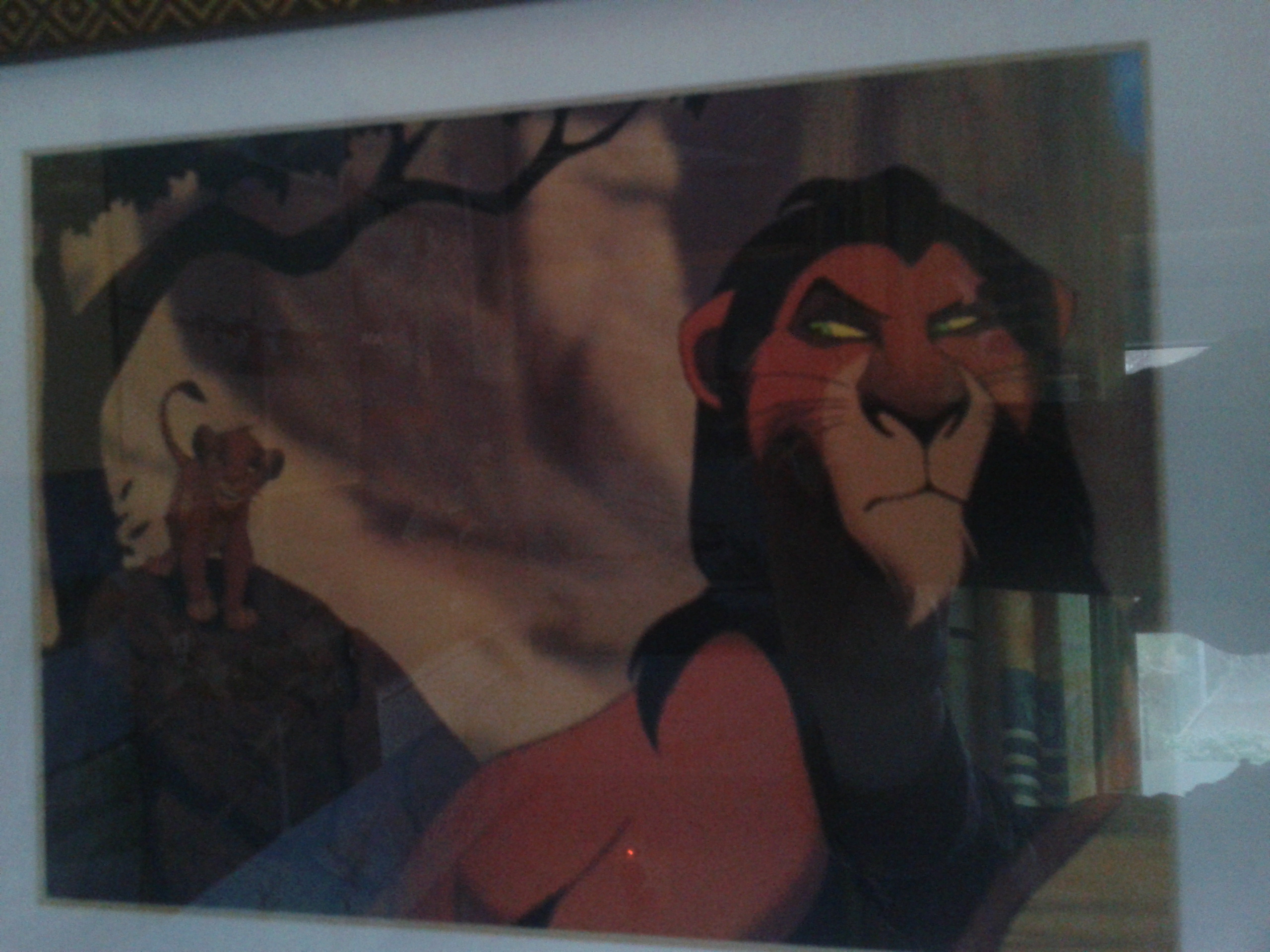 Where that very awesome frame came from is a whole other question. I know when the movie was out they had very expensive sericels for sale at the Disney Store framed, but I can't remember for the life of me what the frame looked like and whether they also sold extra snazzy lithos like that in them.