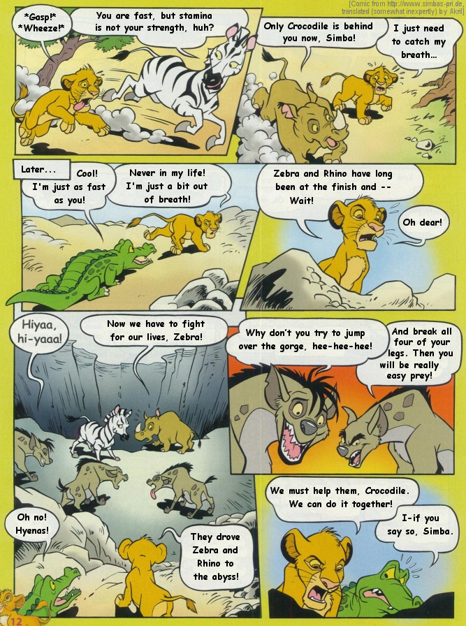 I had trouble translating the dialog in the first two panels, so I ended up changing it a bit. As you can see on this page, Simba is indeed a very sharp-minded young feline.