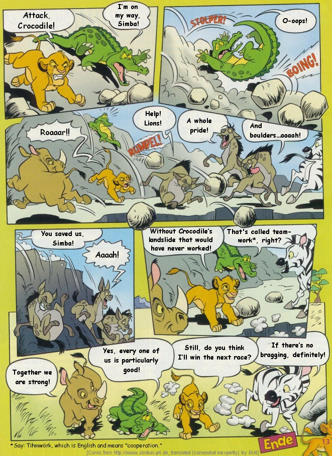 I found a couple of German TLK comics on http://simbas-pri.de which haven't been translated into English yet. Armed with nothing but a very minimal knowledge of German and Google Translator, I decided to take on the job of translating them for the English-speaking fandom myself.
