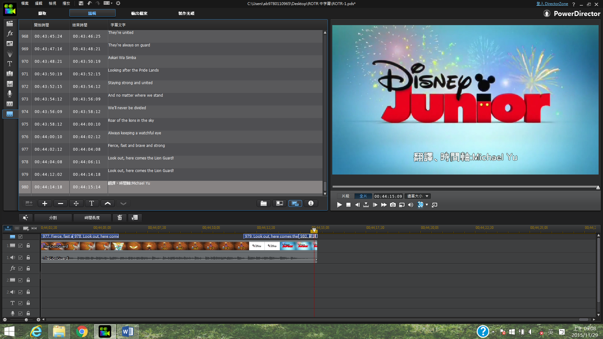 I used PowerDirector 12 to make this. There're 980 lines in it. It's quite exhausting since I had to think about translation between two languages. And it's hard to keep the initial meanings. But anyway, this is it.