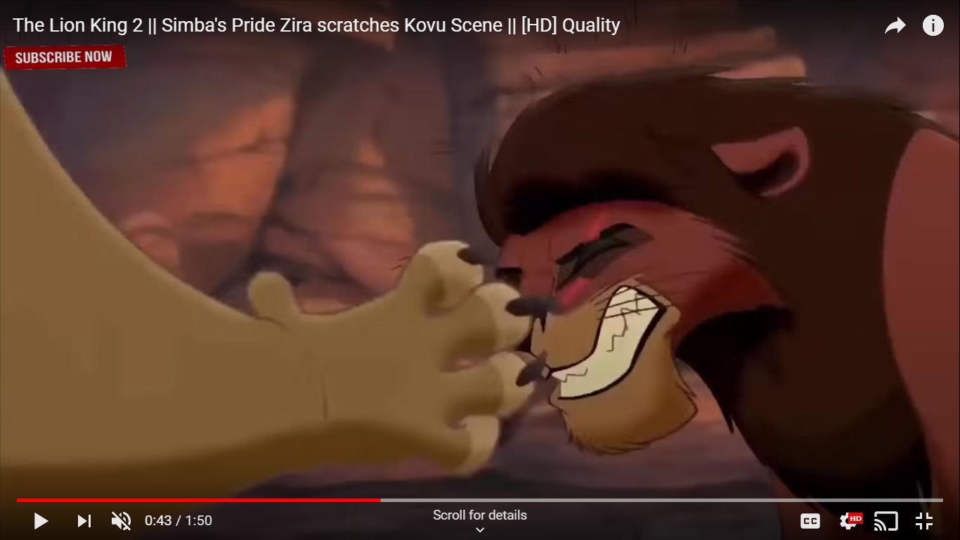 Panpardus wrote:Well Zira hit Kovu sideways across his face with multiple claws; the resultant scar from that actually makes no logistical sense.