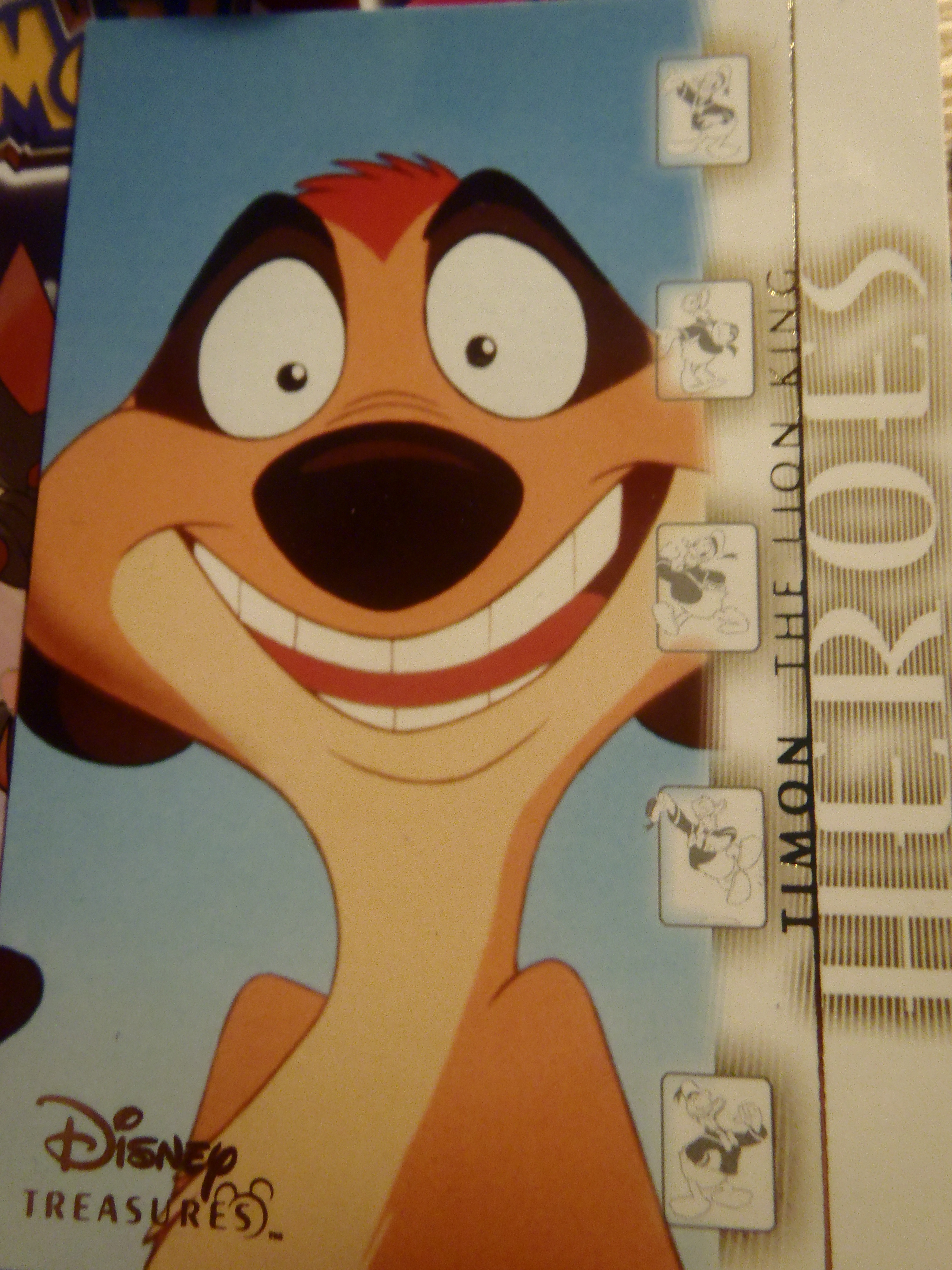I can't remember who it was who asked me to get a better photo of the Timon card but here they be: