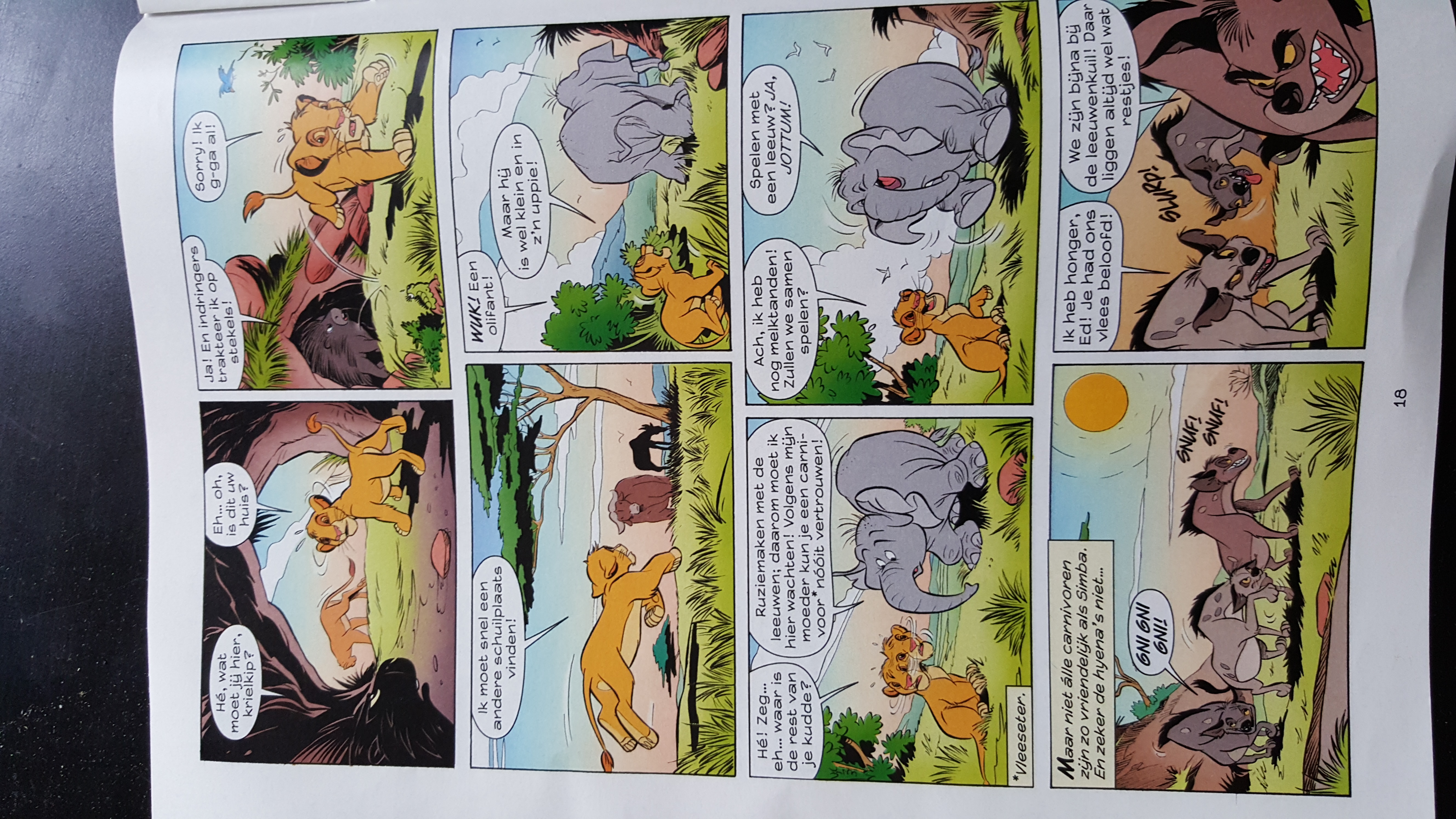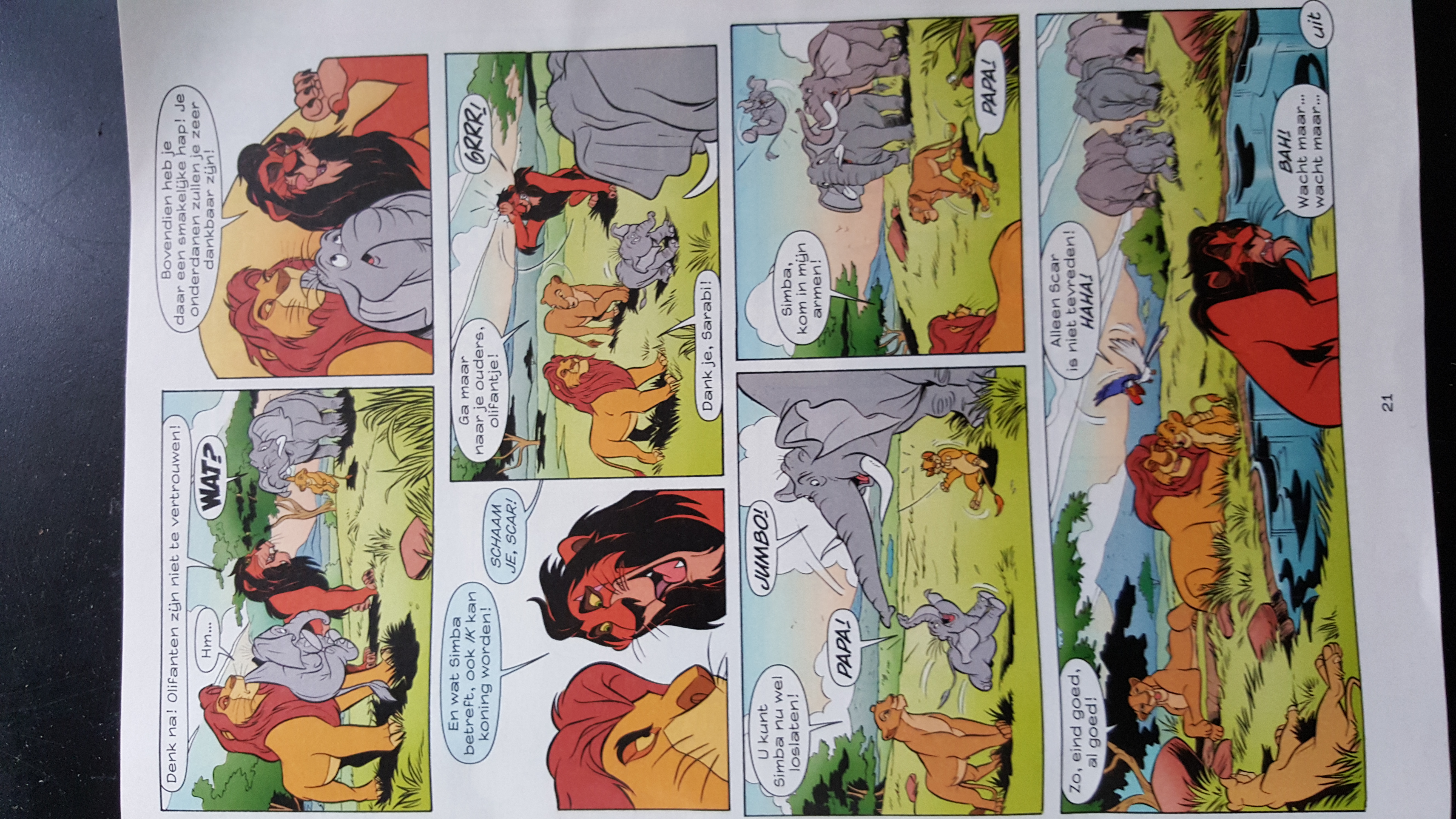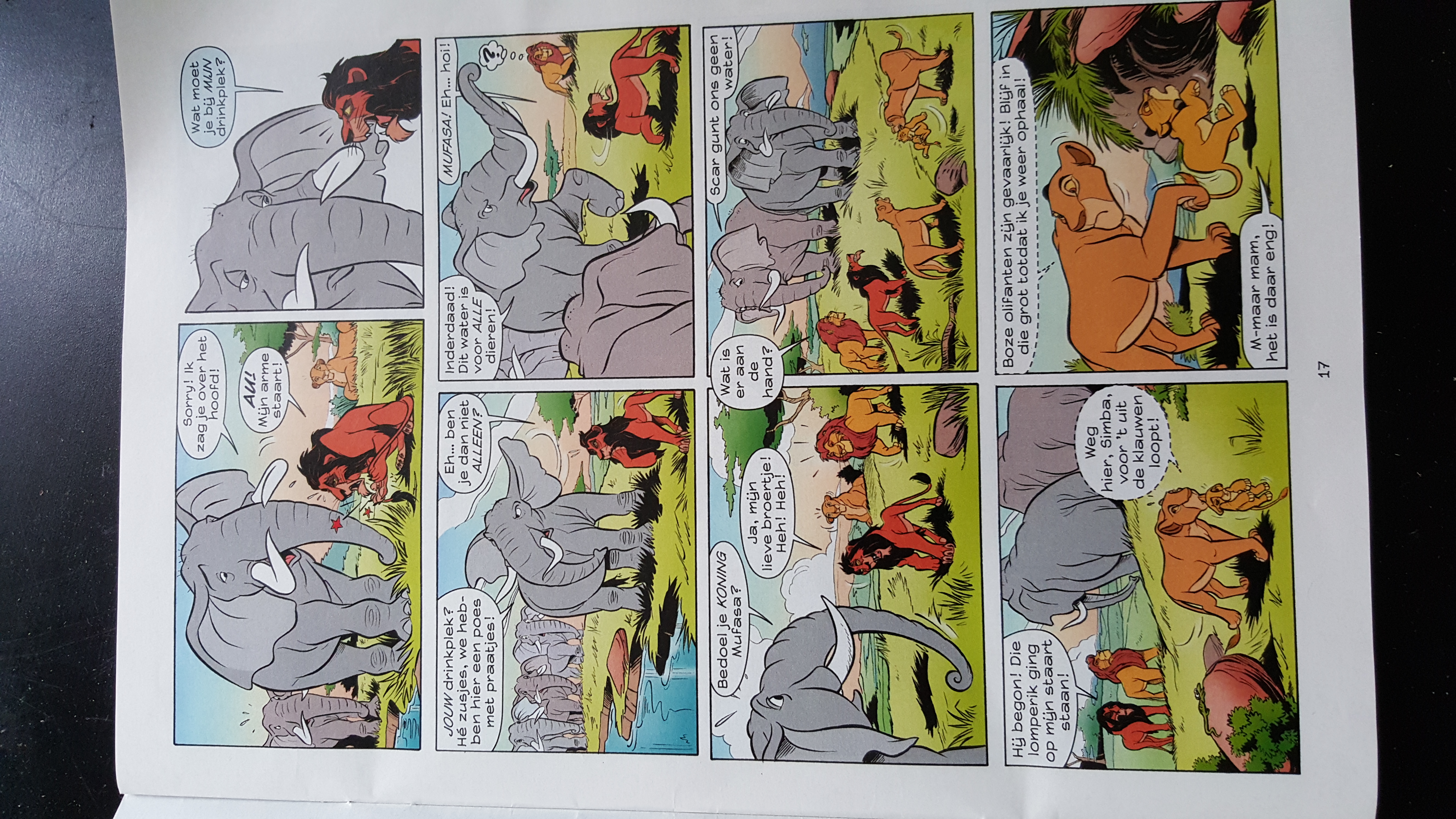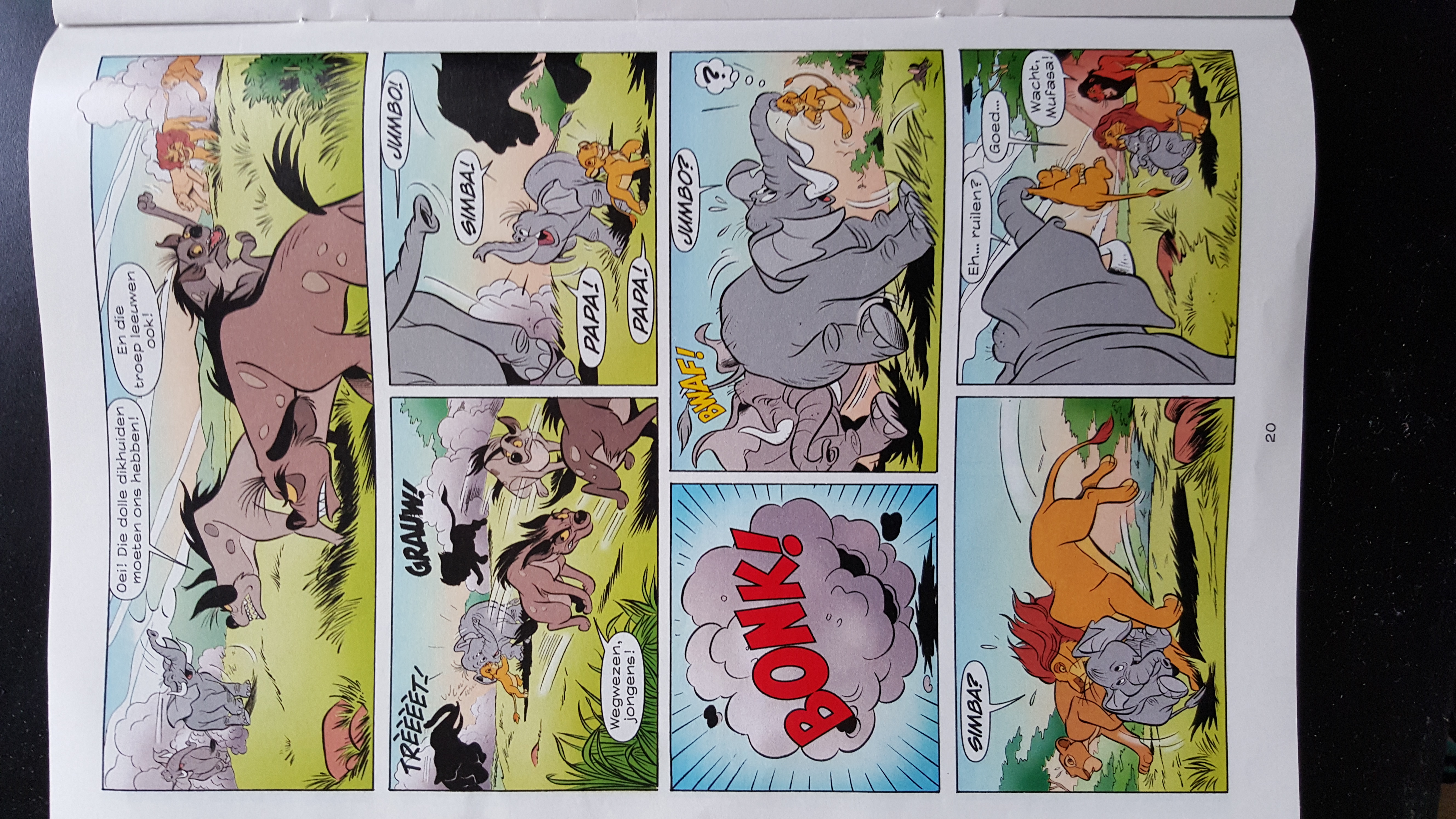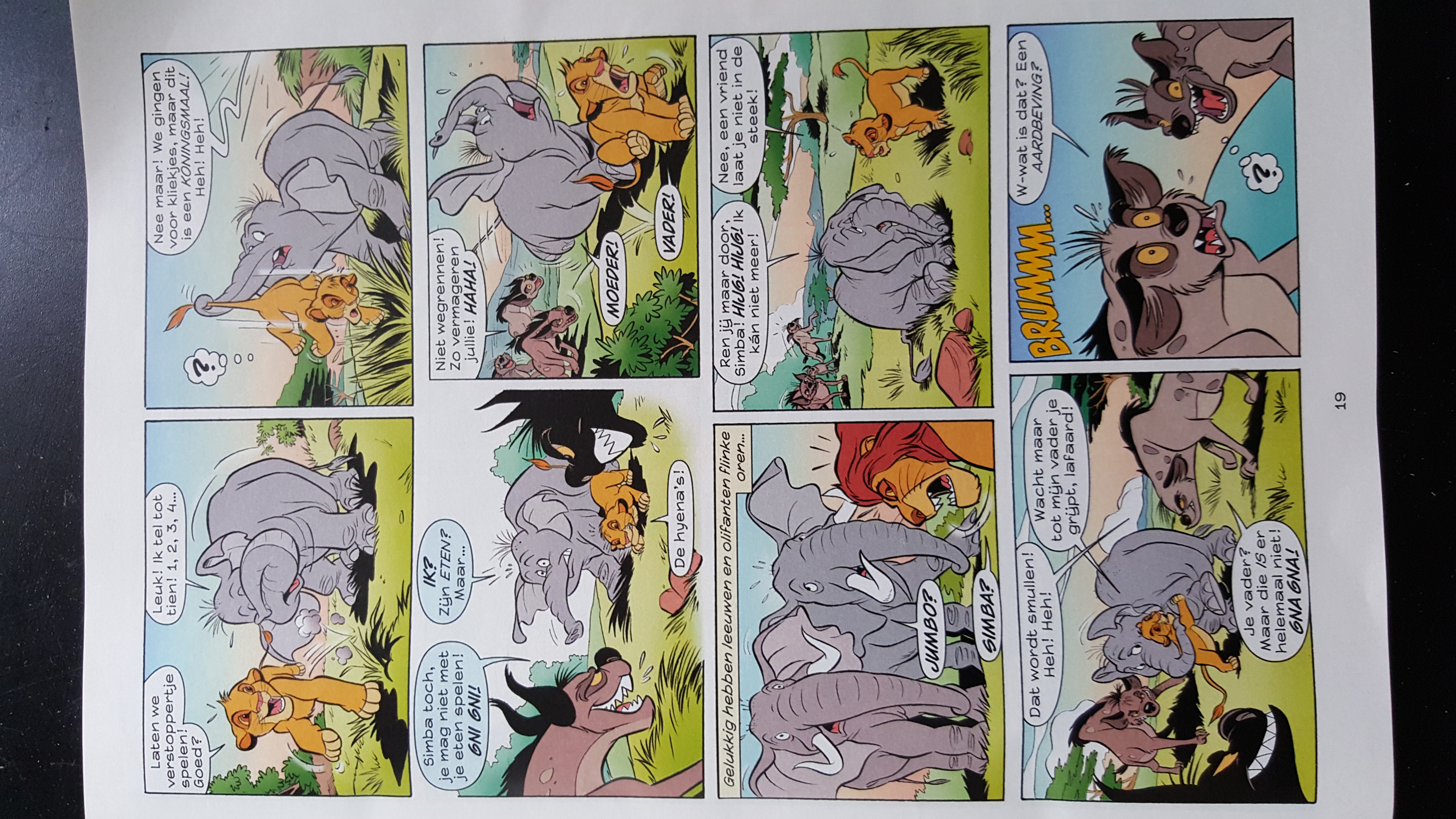 In the comic we see scar, mufasa, sarabi, simba, zazu, the hyena's (with very strange looks and Ed can talk?) and a random warthog that looks like pumbaa.