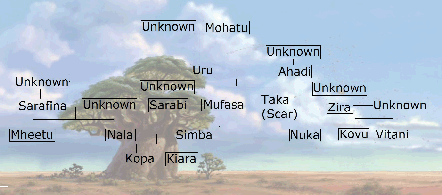 So many different varients, plus interesting to see that Uru may have been Mohatu's cub compared to the usual male succession from Mohatu to Ahadi, to Mufasa, to Scar, to Simba.
