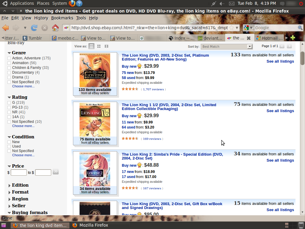 I found a Simba action figure on Ebay that was priced at $ 200! Then, I got the same action figure at a Goodwill for 50 cents :lol: