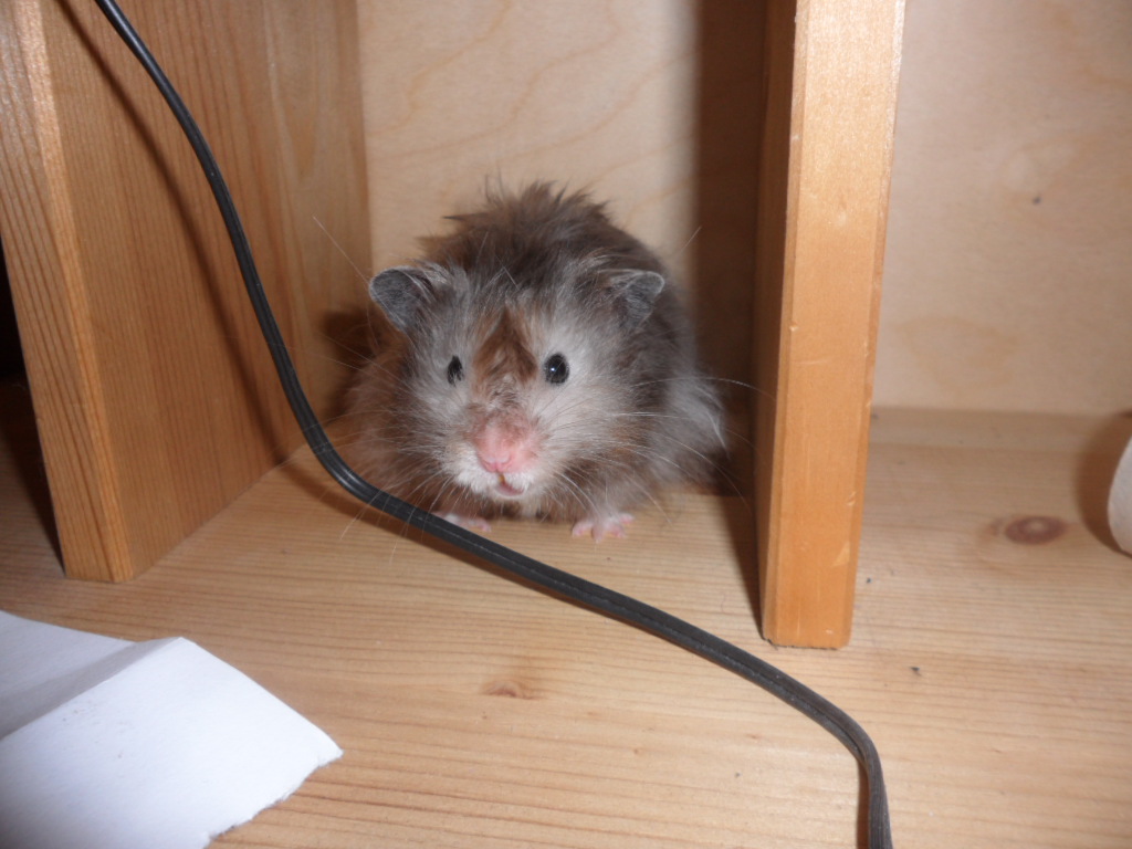 Castiel is the best pet I've had so far. He is very sweet and super funny. When he gets really excited he tends to get all twitchy and spaz all over the place. He loves licking my face and fingers and I tend to take him outside with me. He usually either rides on my shoulder or hides out in my hood and falls asleep in my hoodie. He doesn't walk or run around places, he bounces like Tigger lol. He's a chubby little guy and I love him to bits!