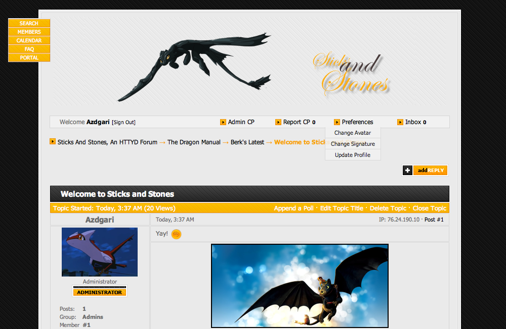Hey y'all, I got fed up with there being no HTTYD boards so I'm making my own. I'm looking for a global mod, or if any of you guys have got some experience running forums and using the Zetaboards ACP, another administrator would be fine too. Basically just a partner in crime. Let me know if you're interested. I'm picky with my staff though; don't take offense if you're not the right fit. ^^