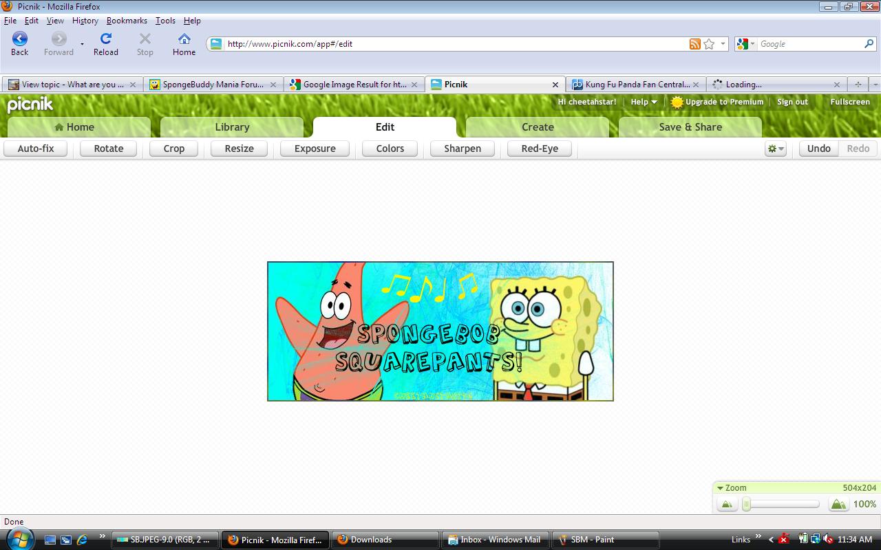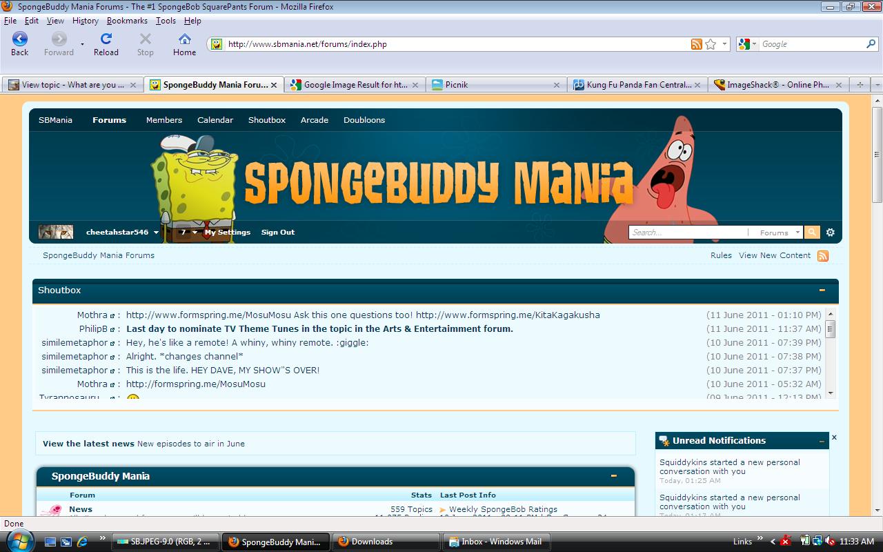 I'm on SBMania and doing some Spongebob Graphic designing.