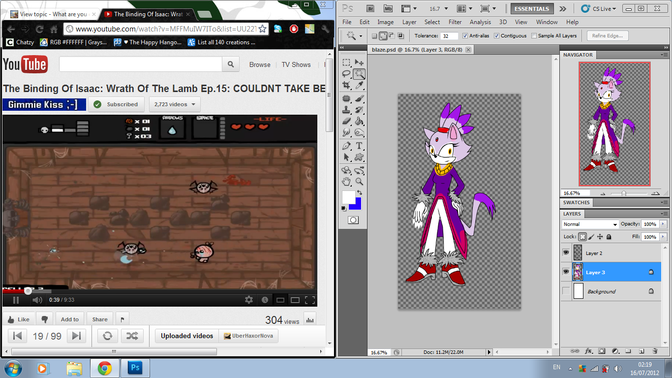 Watching UberHaxorNovas videos and drawing blaze the cat :P