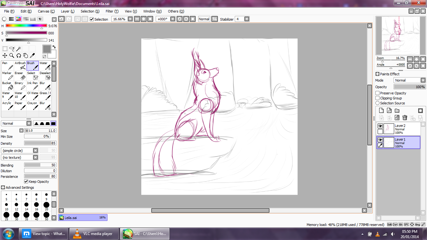 Sketching a new piccy :3 and listening to some music (minimized player)