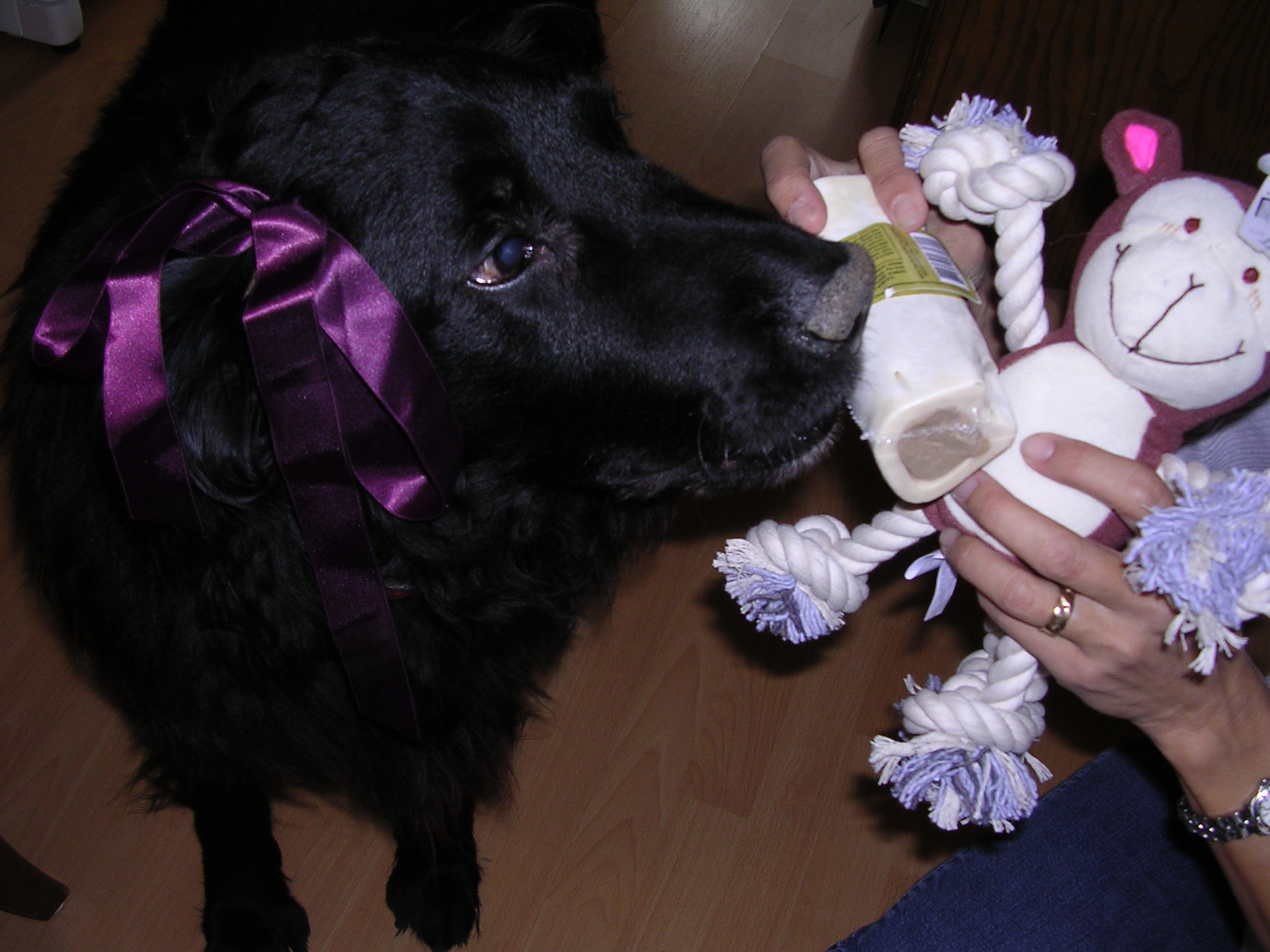 Zeke wrote:We got him 2 frisbees, a giant bone, a collar, and something esle, but I forgot