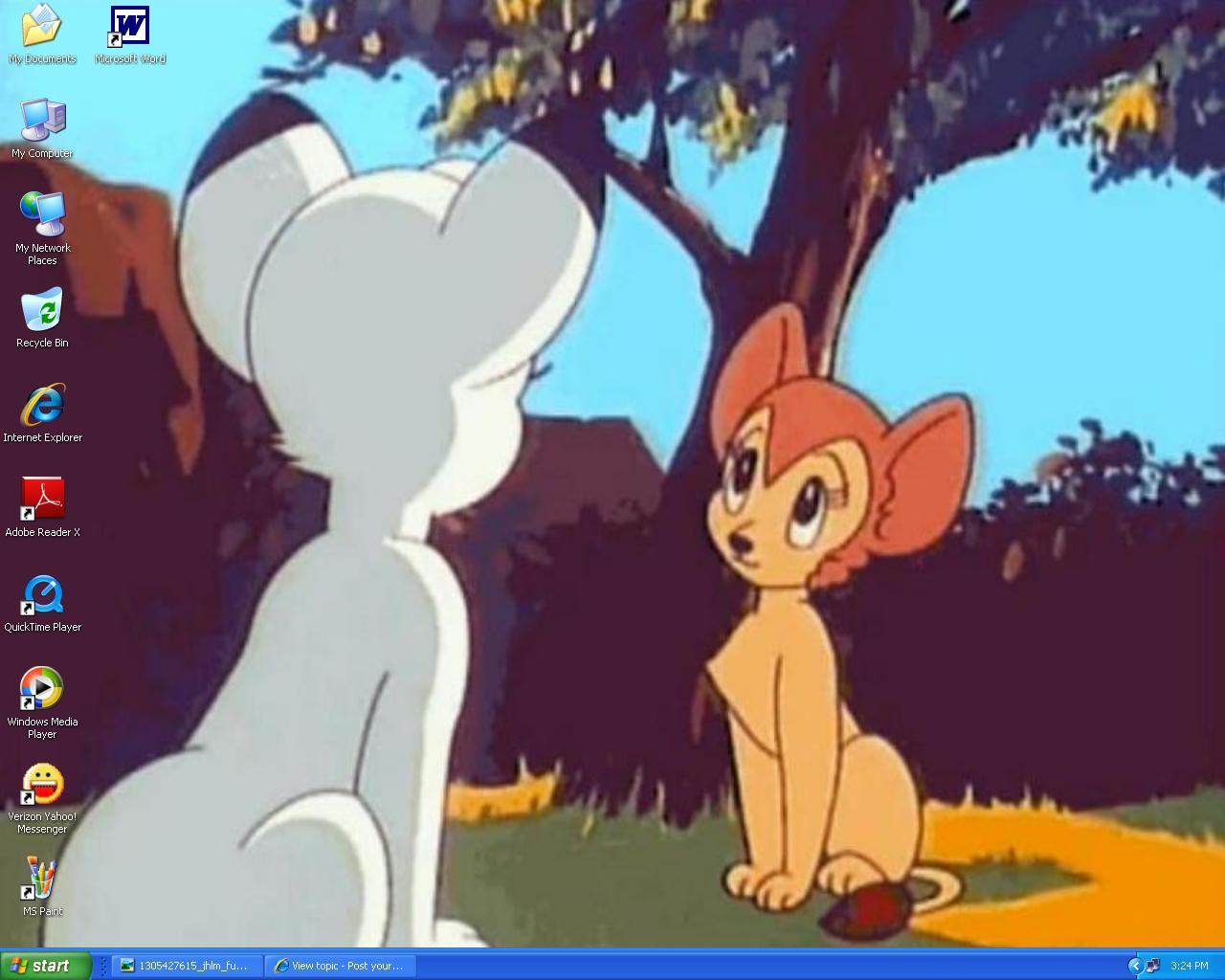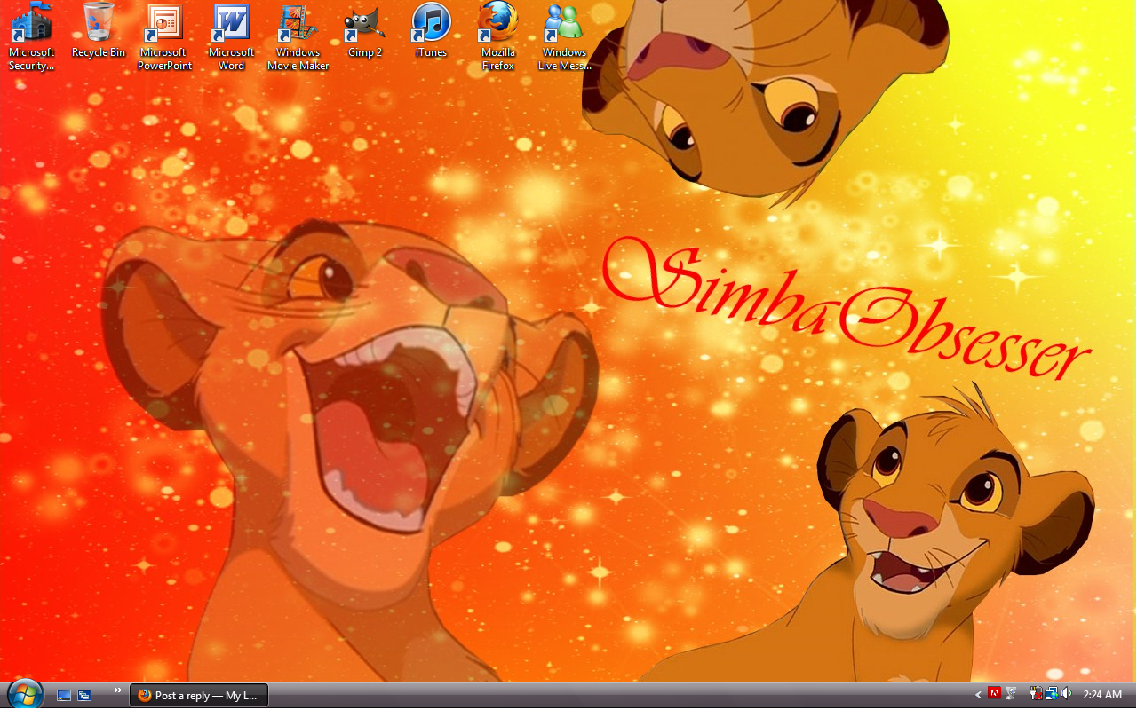 Here's my desktop on my netbook while connected to my external monitor. I have 15 or so backgrounds that cycle and this is what just happened to be the one when I took the screenshot.