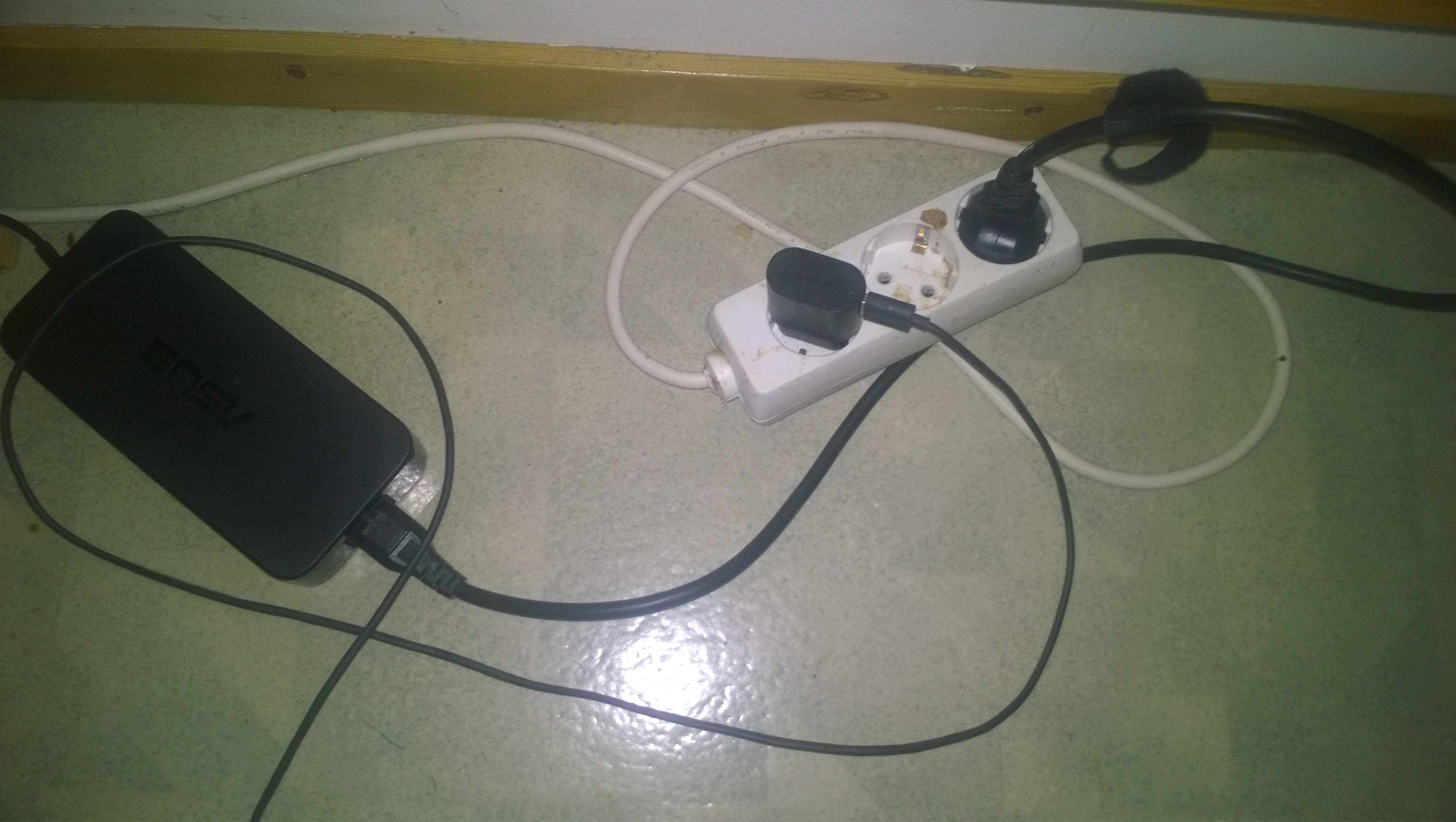 At least there's no electricity all over the floor anymore. It smoked already quite nicely. I wonder why it didn't break the fuse although those holes were full of water! :-o
