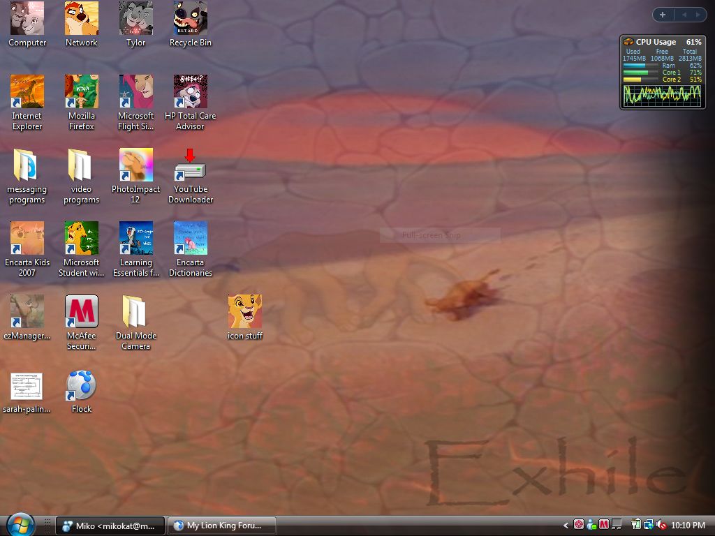 this is the one for my laptop... all my desktops just have the basic Windows XP background.. the green hill... This is a pic of my laptop background. I finally hooked up my laptop to an external monitor. it's pretty epic.