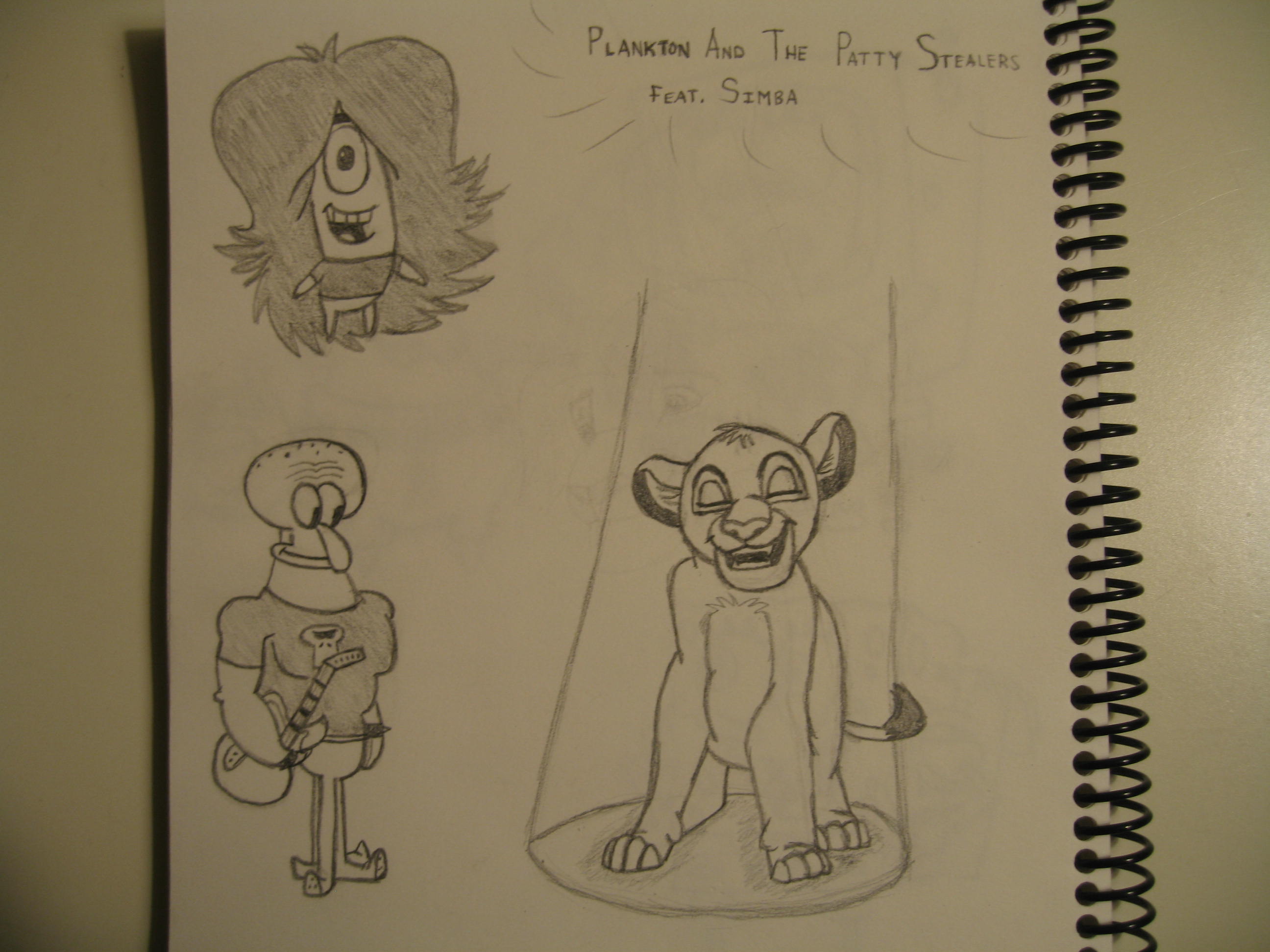 ) ! How did Squidward get muscles? While Plankton, Spongebob, and Patrick were rehearsing in Spongebob's garage, Squidward was trying to work out because he said that if he wanted to be in a rock band, he wanted to have his "perfect dream body". Plankton has that cute little hair. How did he get it? At the beginning of the episode, he escaped from prison and one of the cops was wearing a fake mustace, which Plankton was hiding under the whole time.