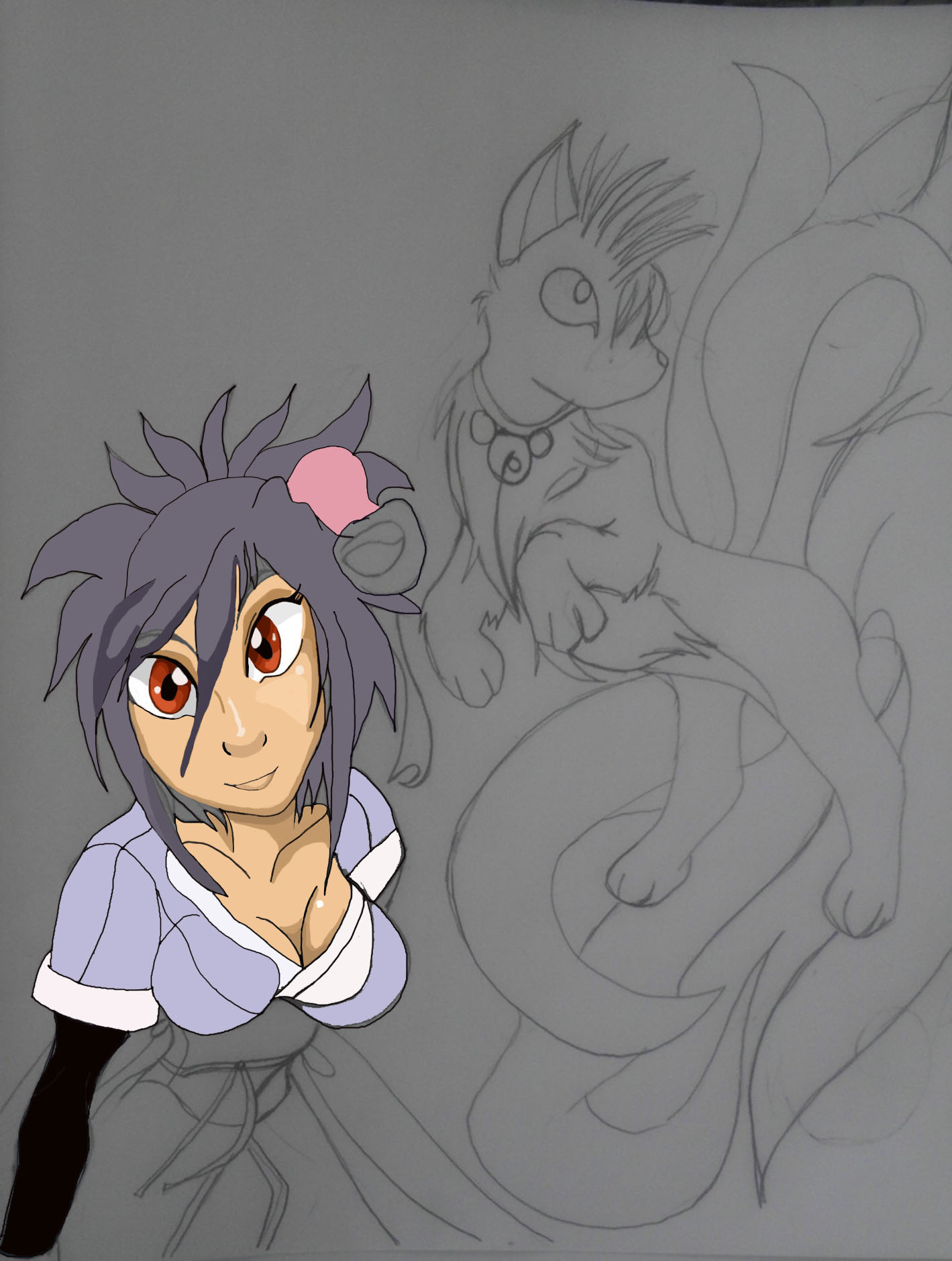 Here's a new pic, just a practice piece to color with my tablet cause I need it lol. This is Sheena from TOS and her creature that looks like a pokemon reject, though I forgot it's name.
