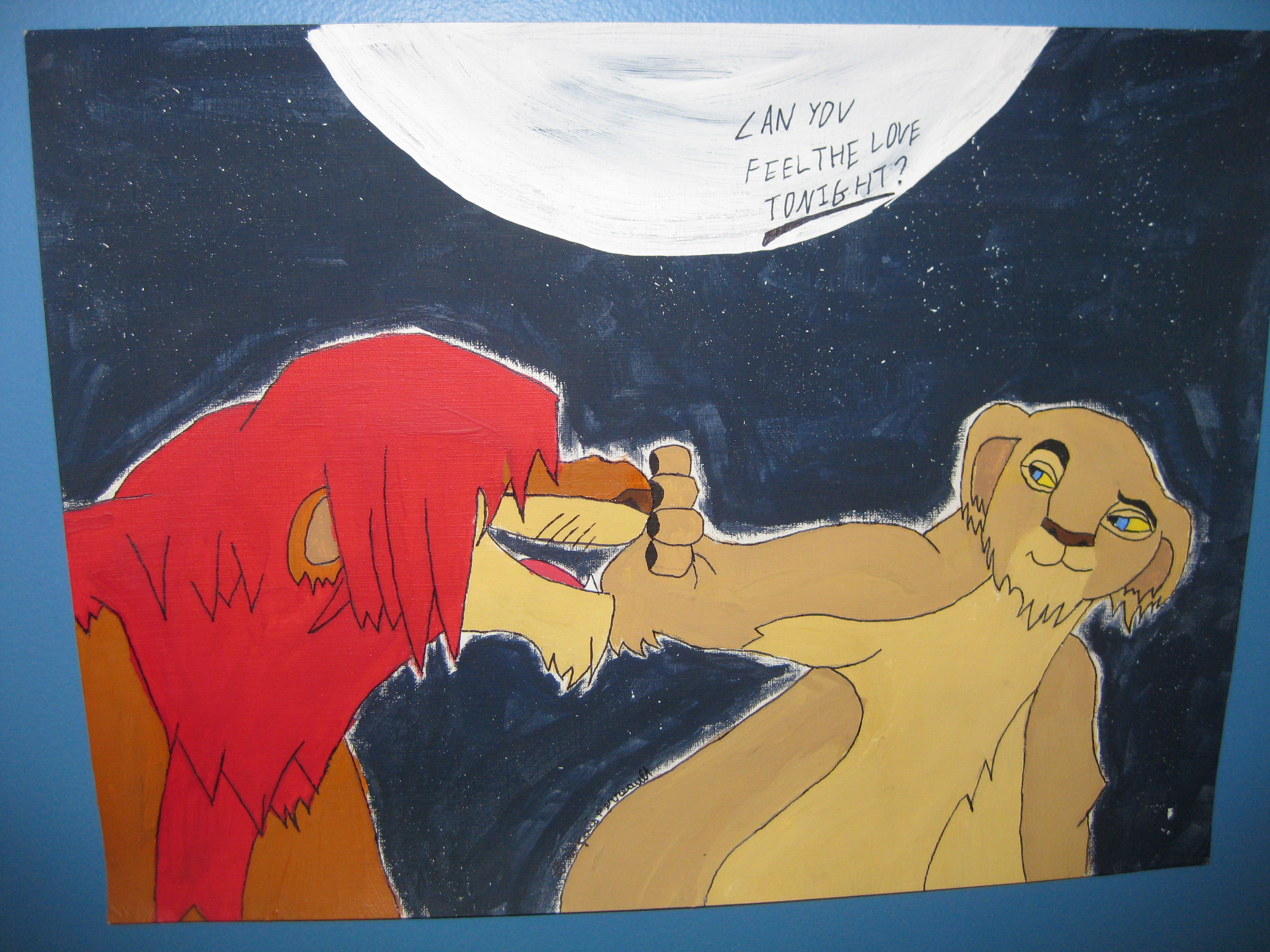 Edit: Some people said simba's leg and Nala's face are off in the second painting and I agree. I didn't do the penciling for that one and that's what I get for it I guess.