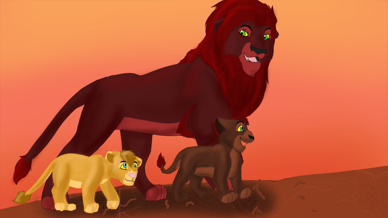 I drew an older Kovu talking to a grey Cub (possible young Kivuli perhaps!). I wanted to try drawing a background properly and drawing some stuff WITHOUT a reference. i think it came out alright.