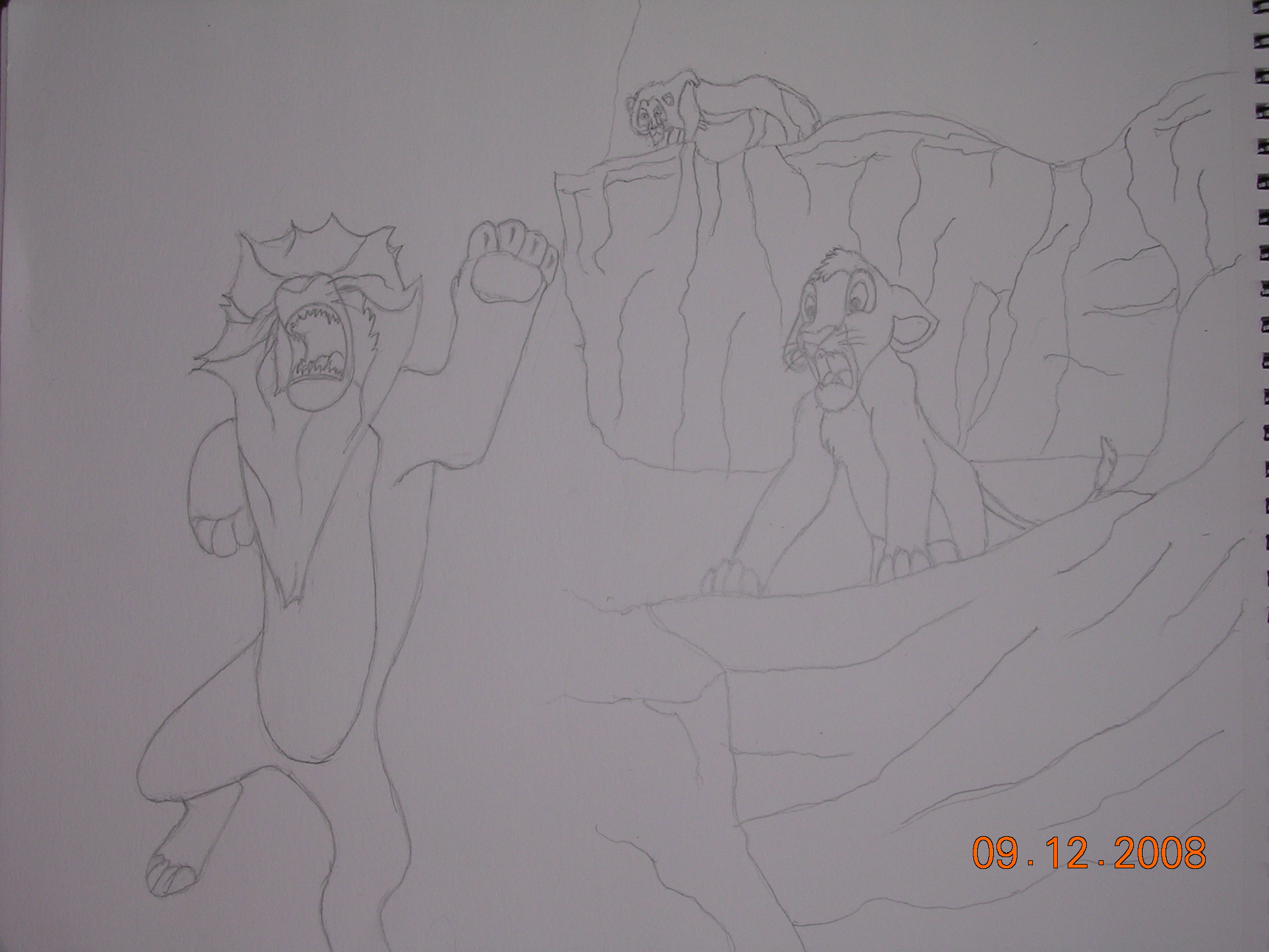 Here's another one. The positioning of Simba is so akward, so it looks funny in the sketch. Also, I was too lazy to draw 50 wildabeasts behind Mufasa, so I left it blank.