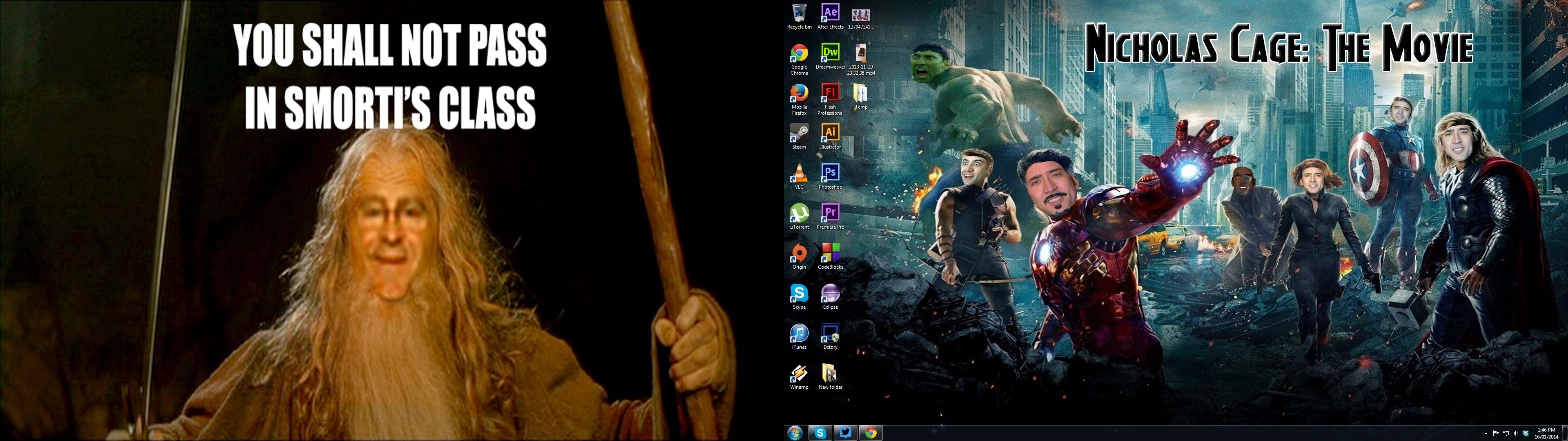 The dude on the left is my Software Development teacher. He one day said "You will not pass in Smorti's class". Someone in the class got creative and made that