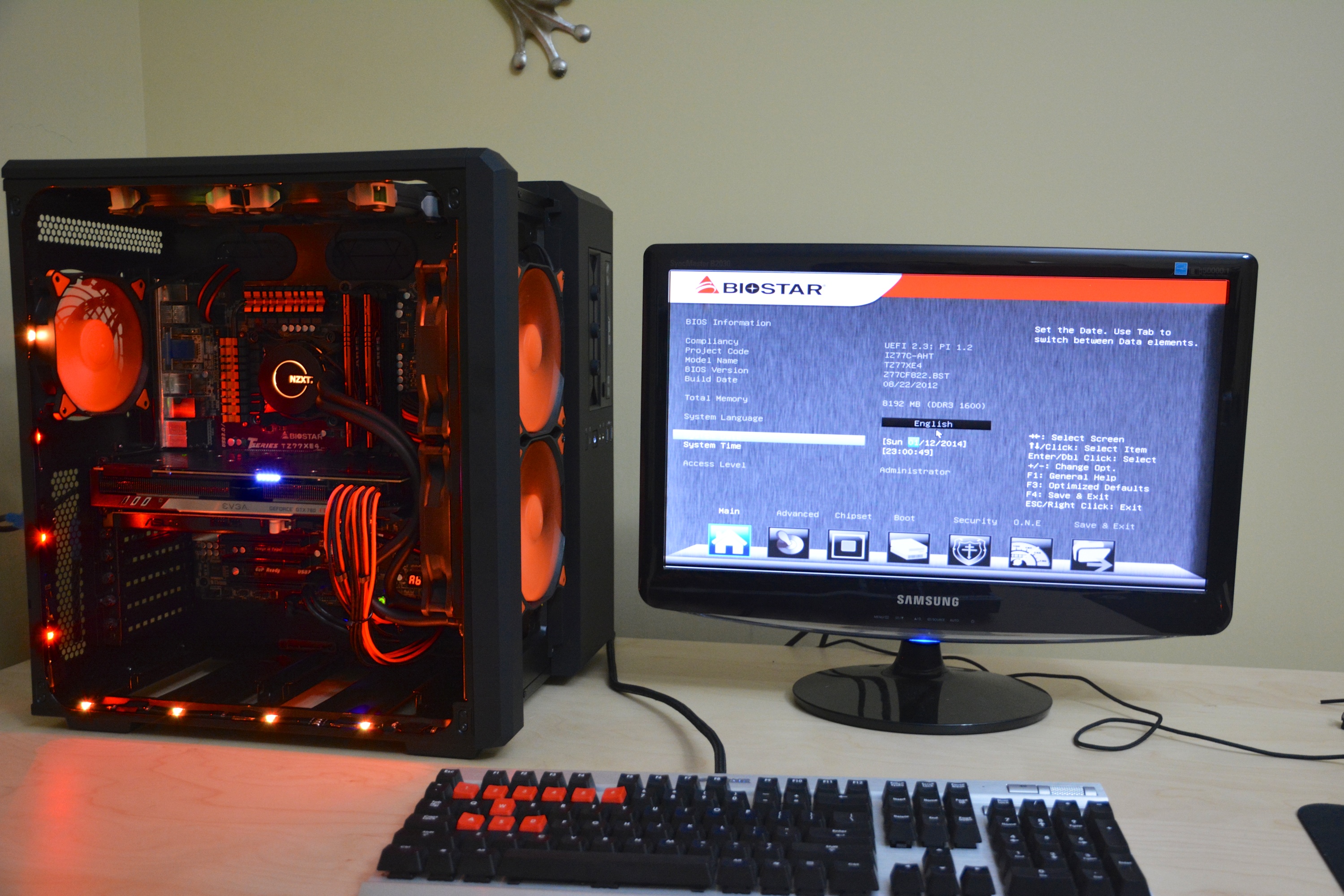 Now that everything is in place, time for the boot up!! Luckily, I got into the BIOS just fine on the first boot! Its also very nice that the HUE and water cooler all kept the settings from last time, even though I did not like the orange lighting that was in it. But don't worry, I ended up changing it!
