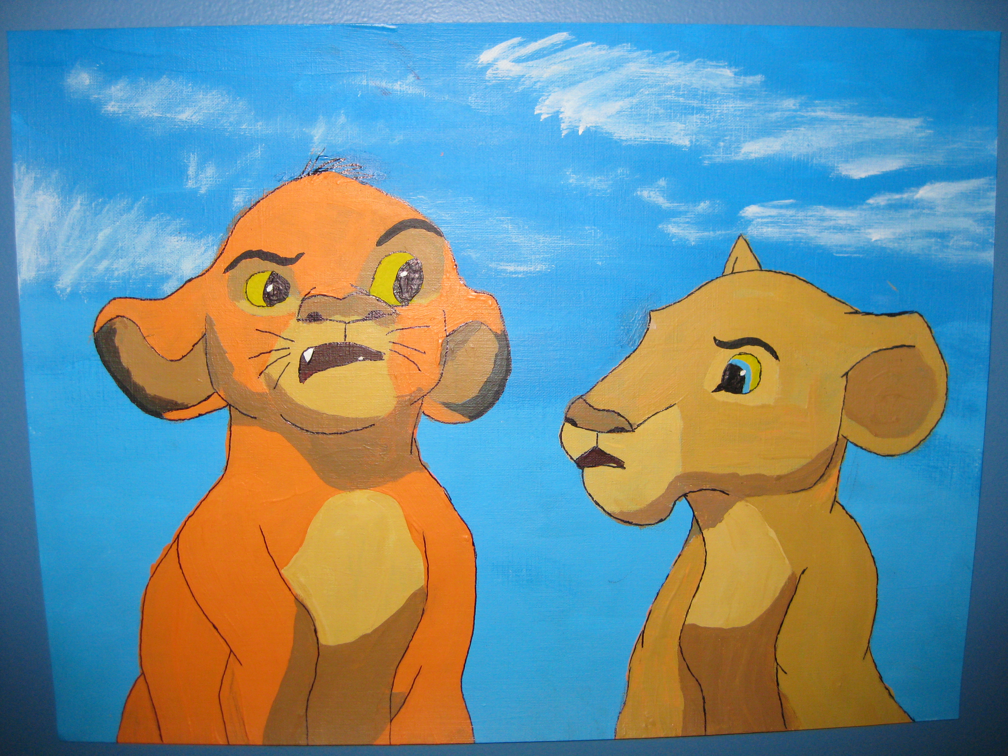 Edit: Some people said simba's leg and Nala's face are off in the second painting and I agree. I didn't do the penciling for that one and that's what I get for it I guess.
