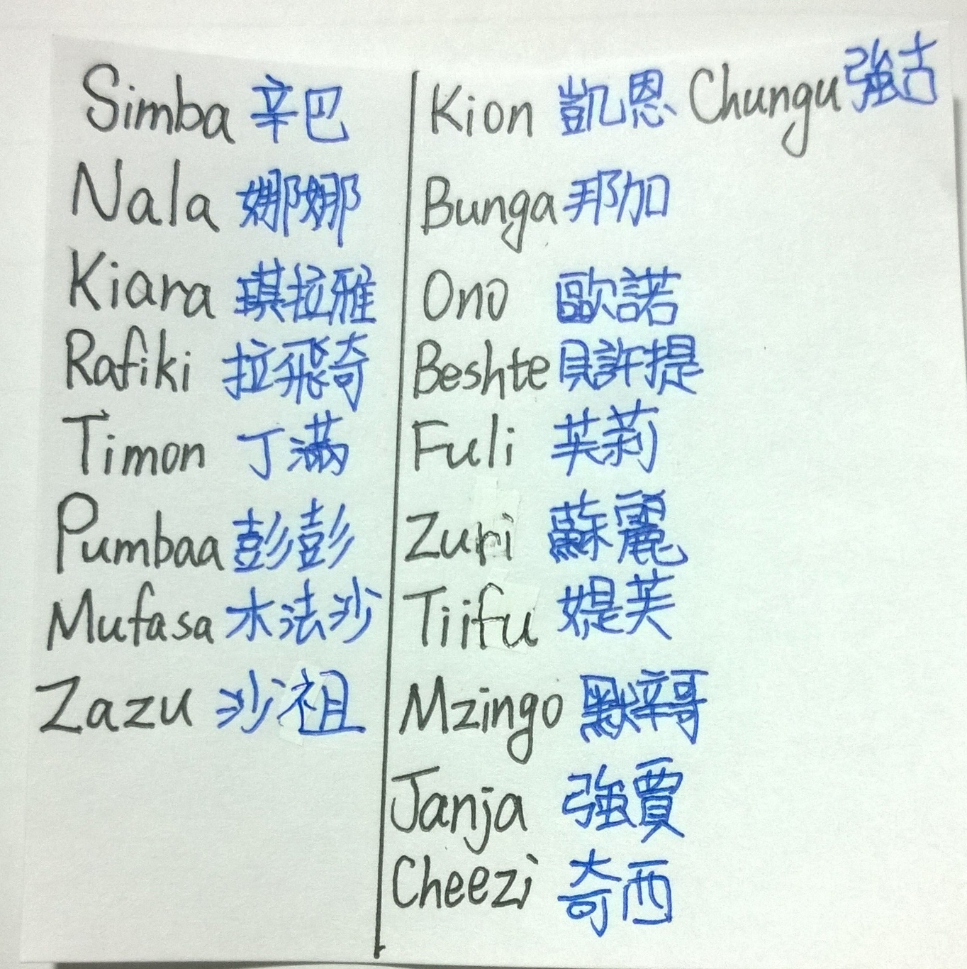 I've created the Chinese names of characters.