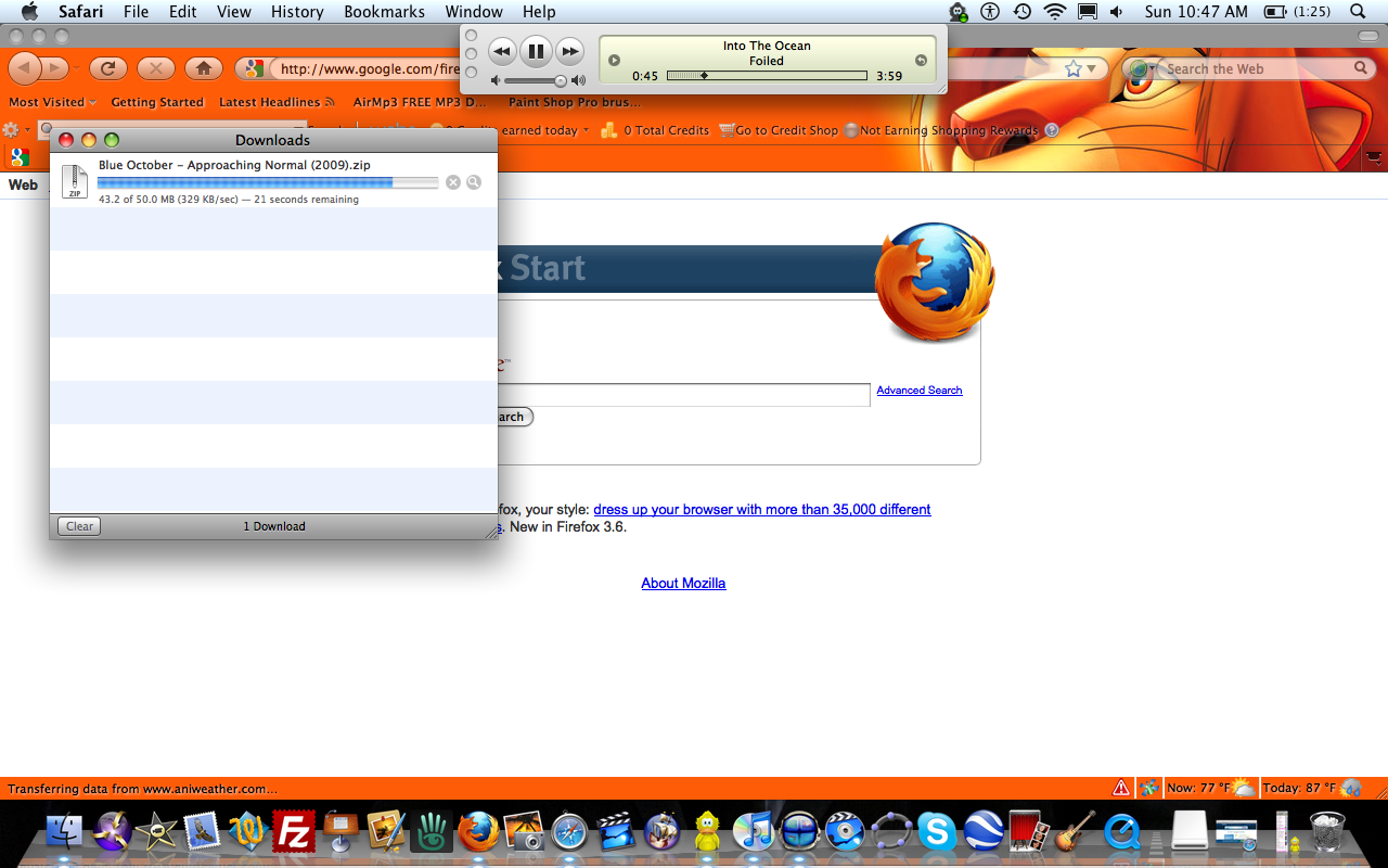 browsing MLK, chatting on Solace, i've got the FTP on my domain open, meebo (for chatting), Facebook, and downloading/installing a program to copy everything from my iPod to my PC ^^