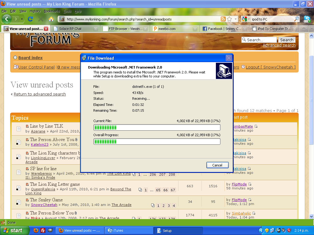 browsing MLK, chatting on Solace, i've got the FTP on my domain open, meebo (for chatting), Facebook, and downloading/installing a program to copy everything from my iPod to my PC ^^