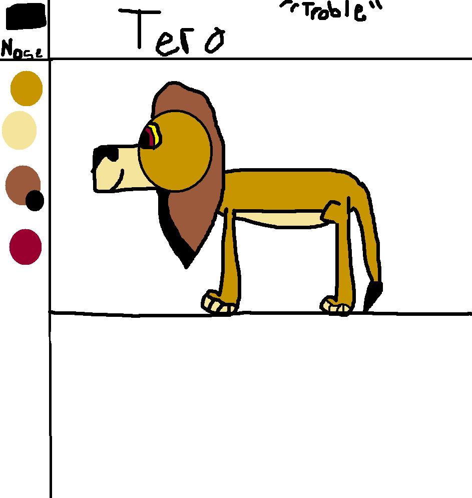 Tero is the son of Kovu and Kiara. He's the second cub born in a litter of three. Since he was a male, he'd become king. But Maua was first born. So, even though she loved him, she was always mad at him. As a teenager, Tero and Maua got in a fight. Maua got Tero hurt. So she was punished to stat in the den for three days. Tero felt bad for his sister. So he stayed in the cave with her. As an adult, he found a mate. He made Kijiti his queen. They had one cub. It was a boy named Kero.
