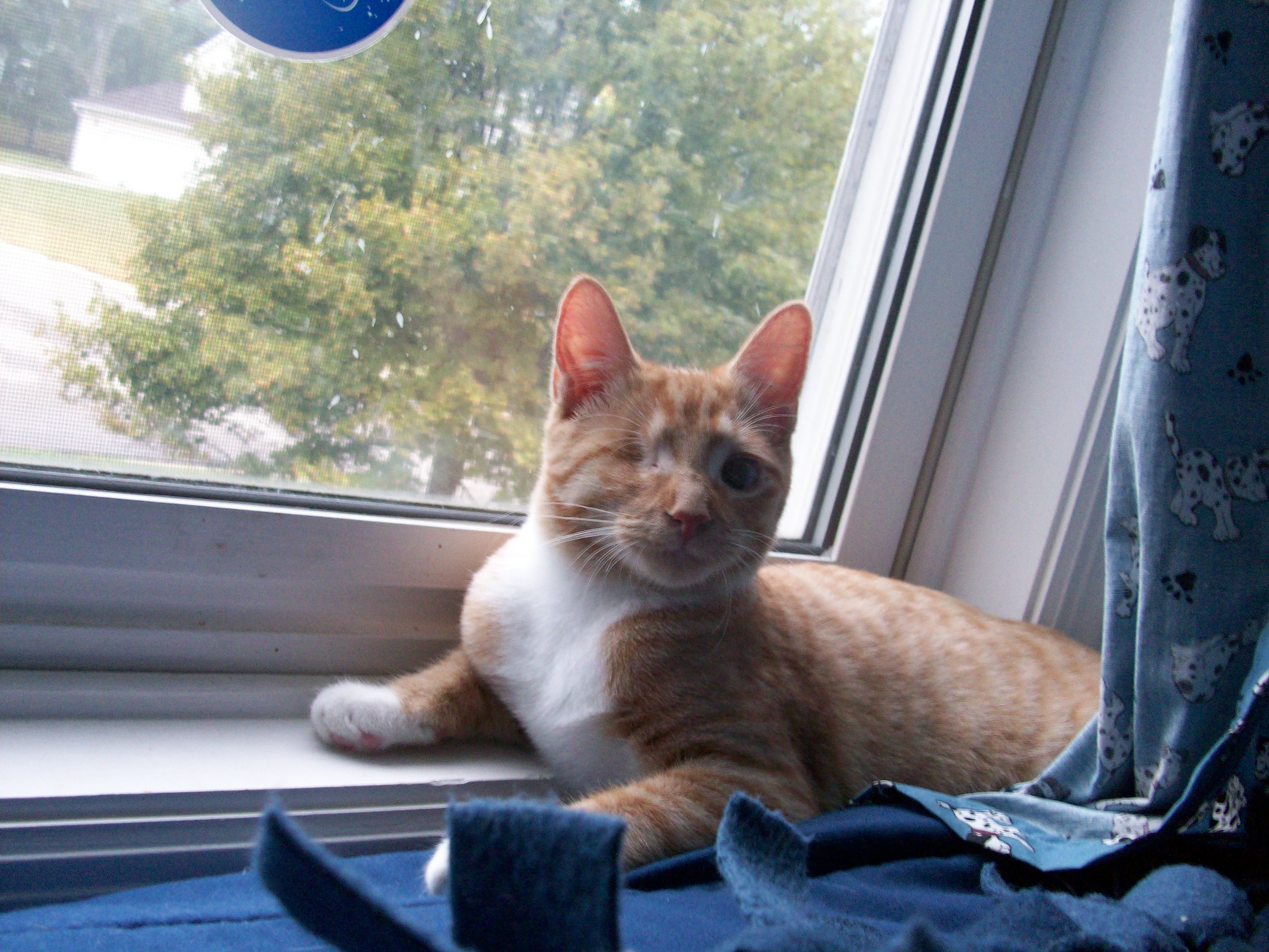 Heather watching you...Yes she only has one eye. Poor girl. We adopted her because no one wanted her, my mom is allergic so it was last chance.