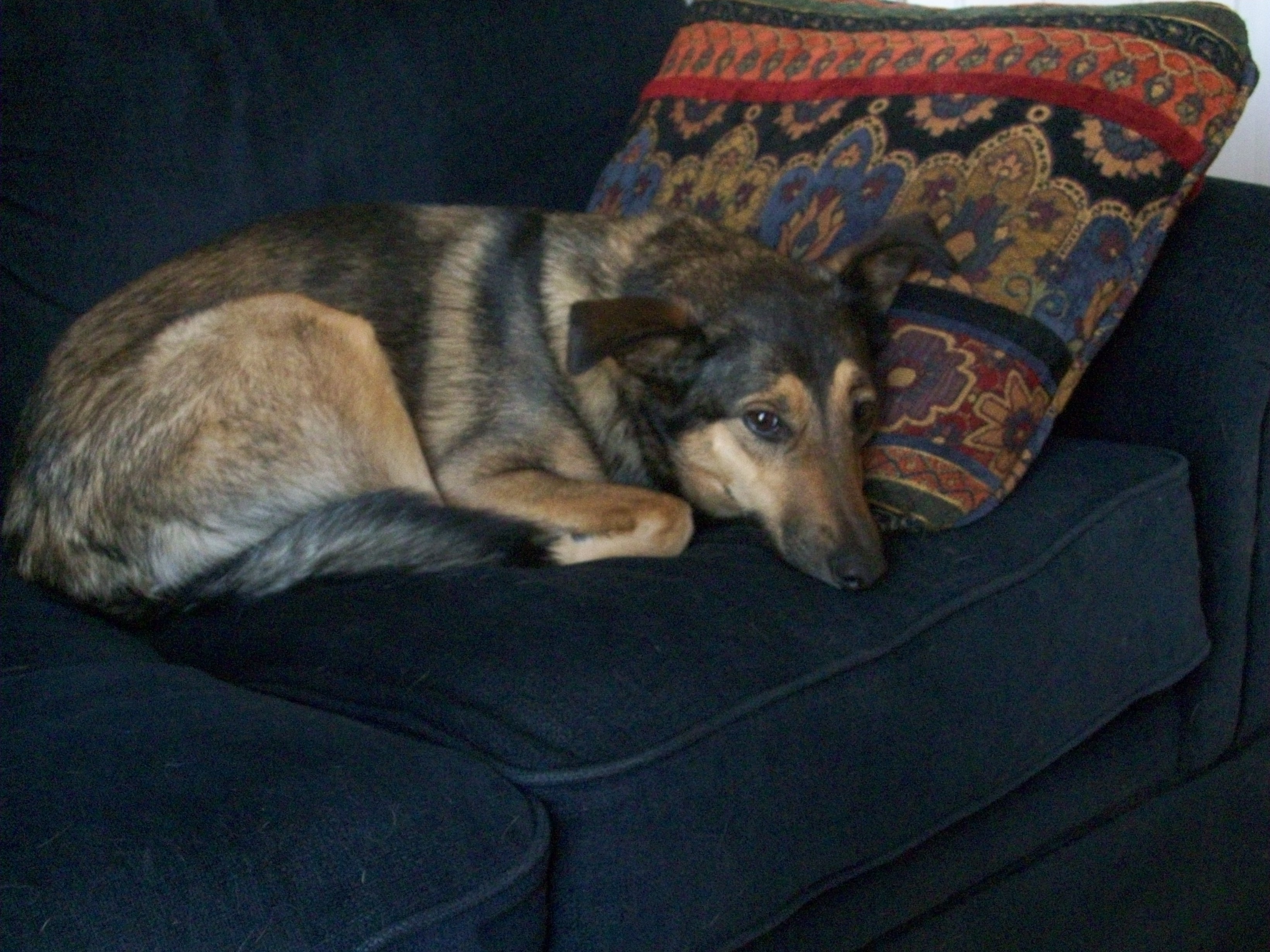 Pepper, my little mixed girl. She thinks she's allowed on the sofa....