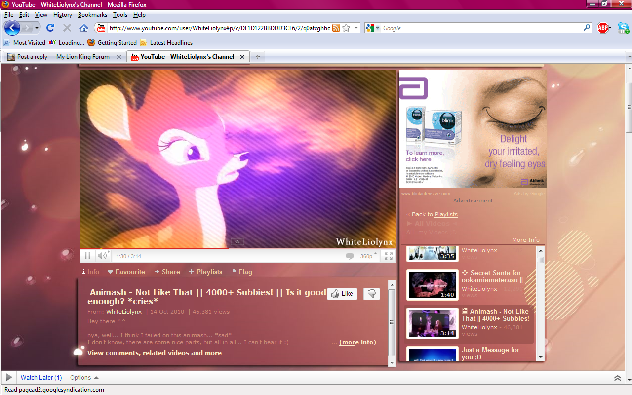 Lol, I'm watching an Animash by Whiteliolynx xD I'll need to check out Lynx's Mashes though.