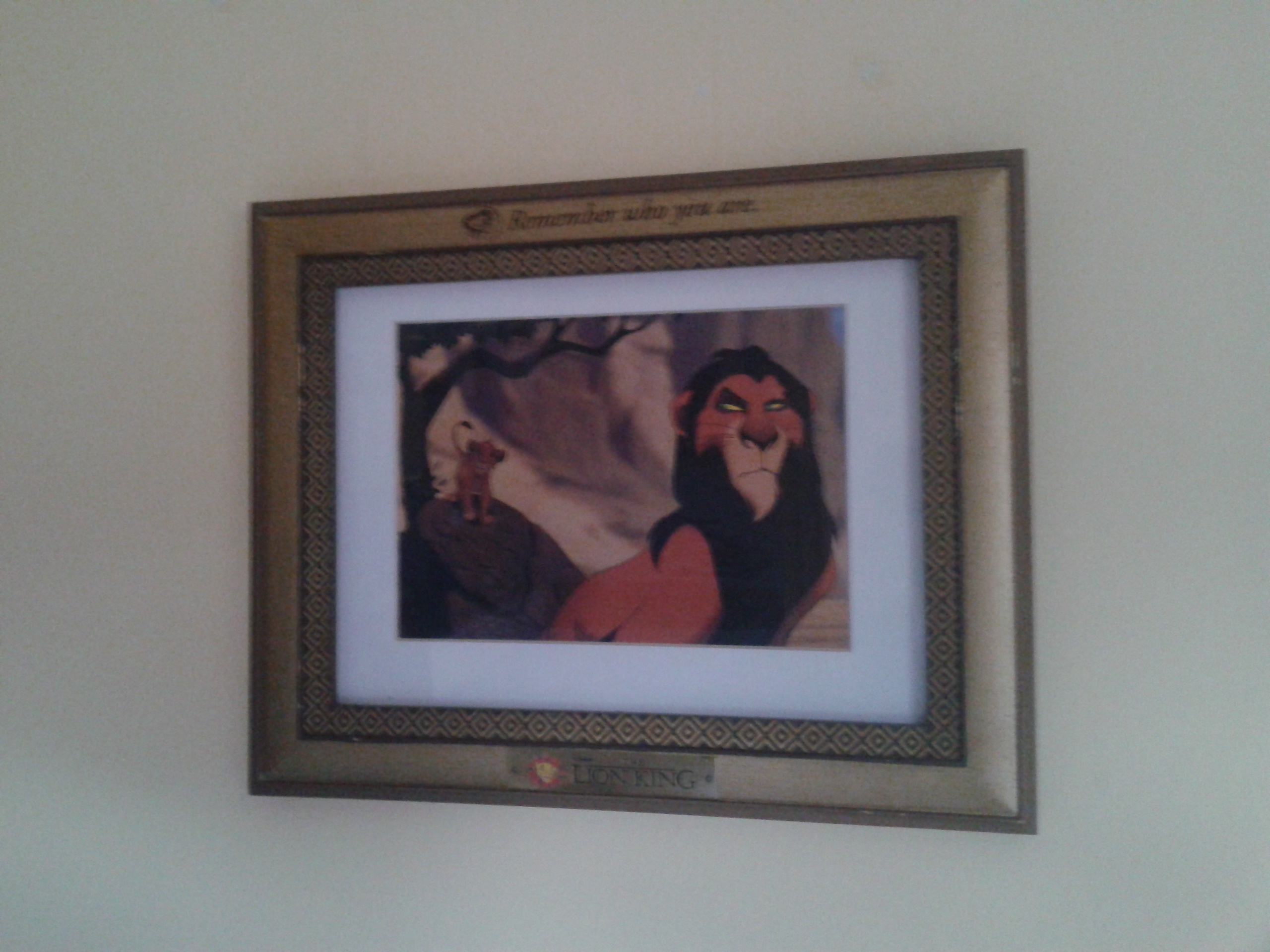 Where that very awesome frame came from is a whole other question. I know when the movie was out they had very expensive sericels for sale at the Disney Store framed, but I can't remember for the life of me what the frame looked like and whether they also sold extra snazzy lithos like that in them.