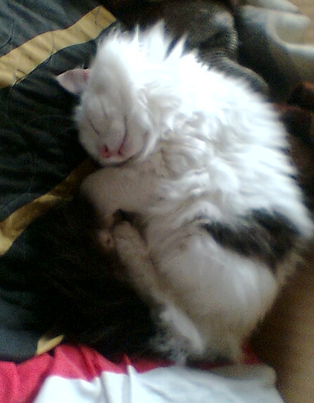 Omg cute pic of my cat I just snapped. 8D She is sitting in my lap.
