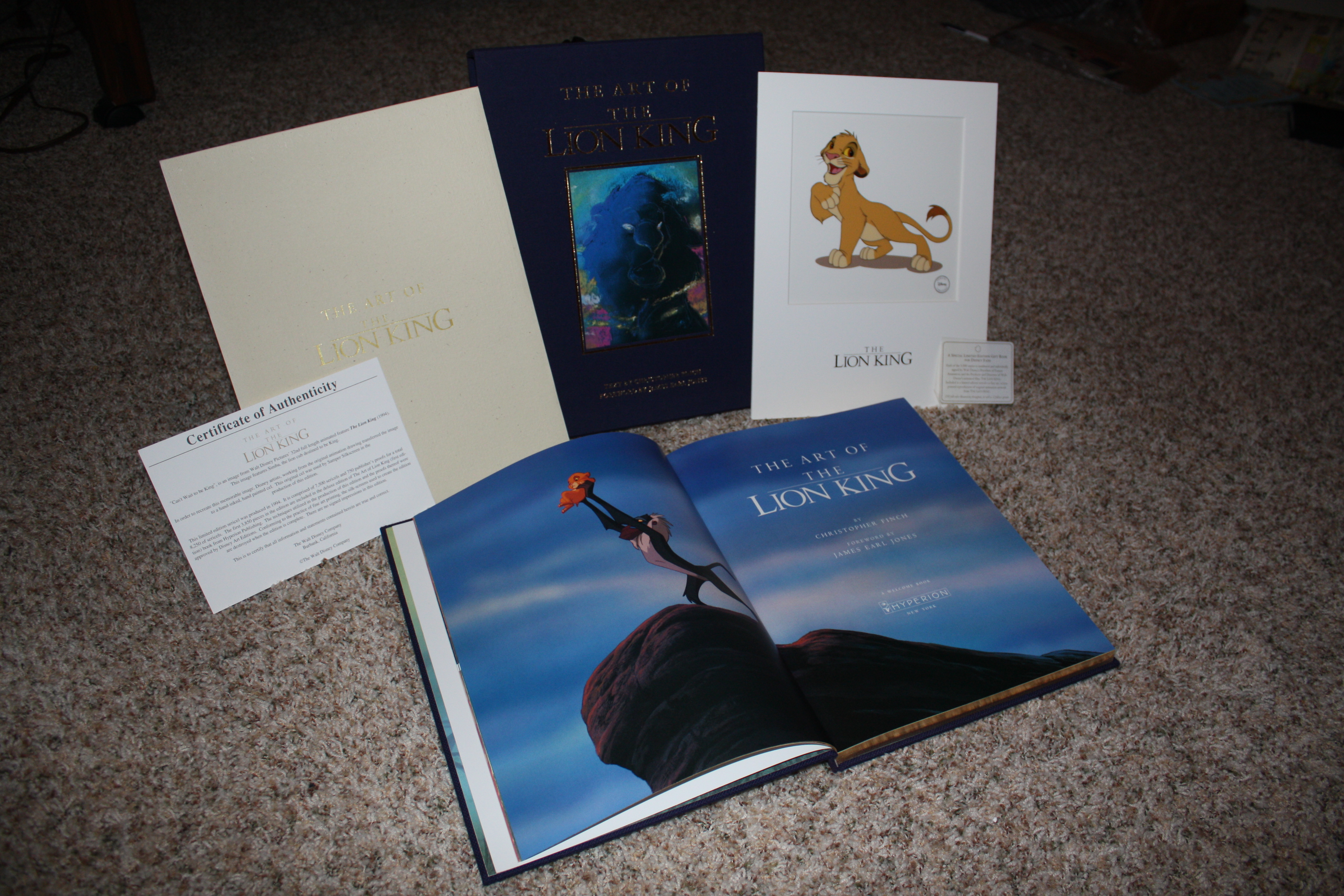 The first one is, without question, the pearl of my collection. I am one of the 3500 Lion King fans that own this epic 1st edition book, its the source of many concept/storyboard images that are on MLK. This cloth-bound book has been signed by Peter Schnieder, Don Hahn, Rob Minkoff & Roger Allers. It includes a sericel (fine art) screen-printed reproduction of original animation artwork (Simba from Just can't wait to be king). I give you...THE ART OF THE LION KING.