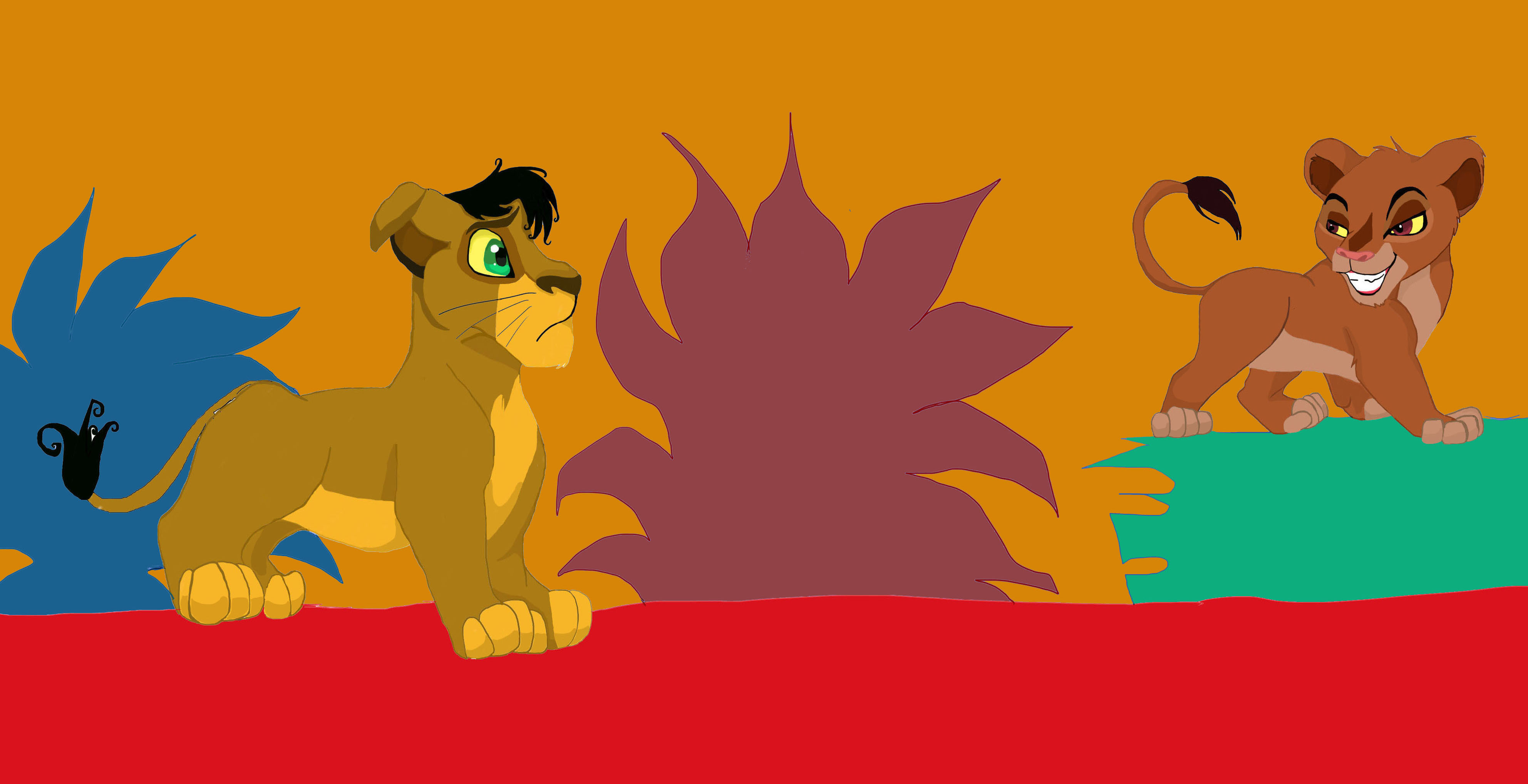 This is my version of Ahadi and Uru as cubs. I'm just practicing with colors, design and expression here and I'm quite happy with the way Uru came out. Ahadi, however, looks like the sickly love child of Simba and Kovu. Oh well :P